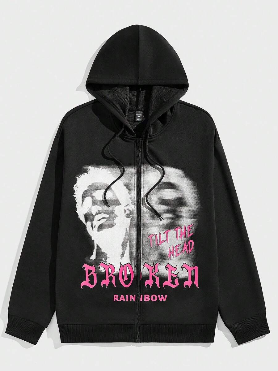Street Life Men Letter & Figure Graphic Drawstring Hoodie