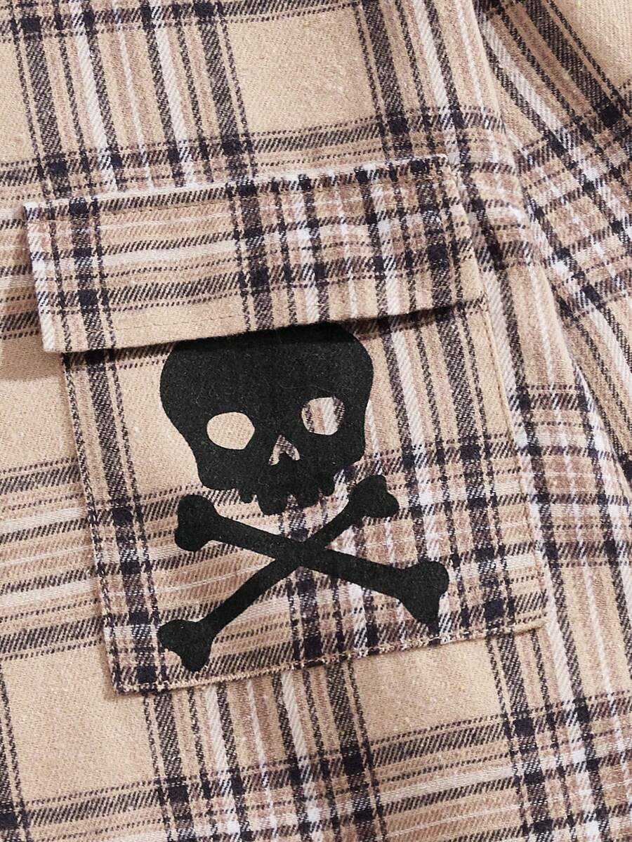 Street Life Men Plaid & Letter Graphic Flap Pocket Shirt