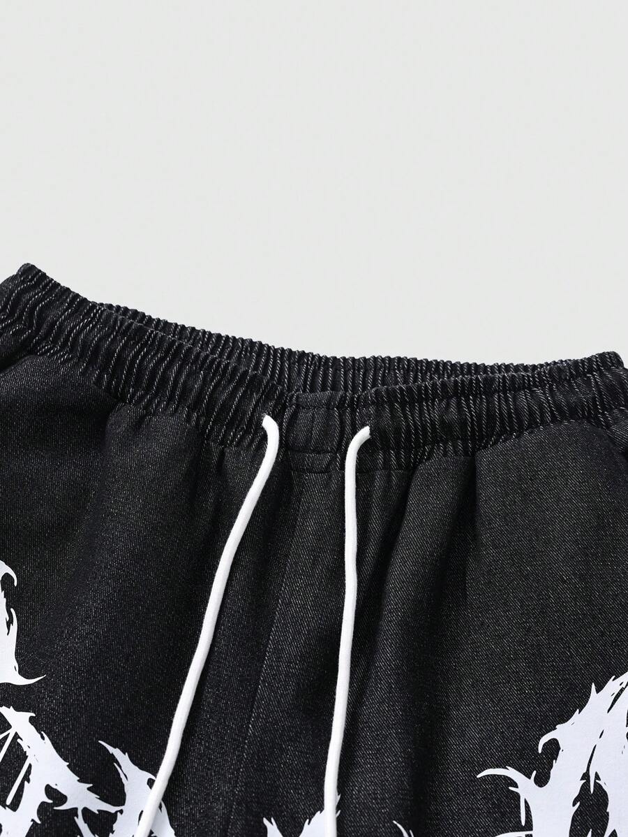 Street Life Men Slogan Printed Denim Shorts, Suitable For Everyday Wear In Spring And Summer
