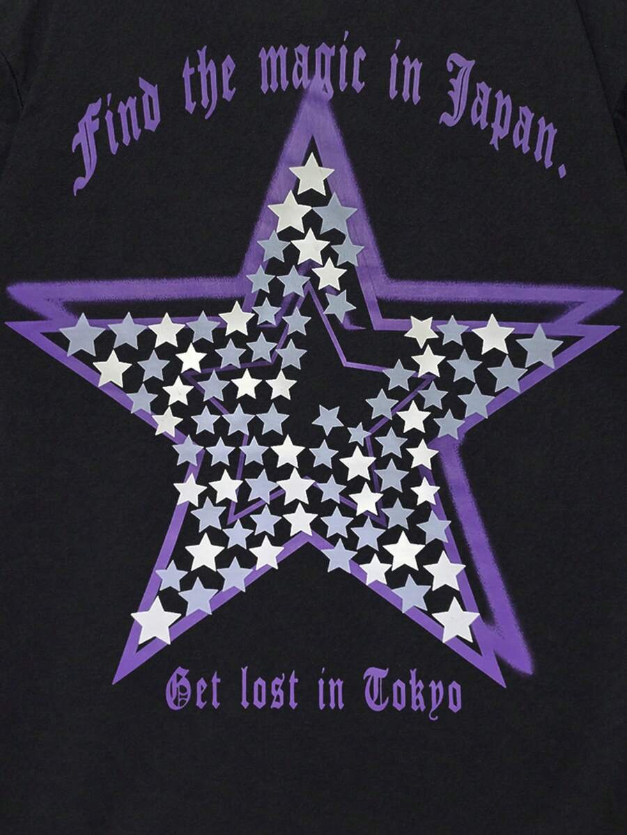 Street Life Men Slogan & Star Print Drop Shoulder Tee