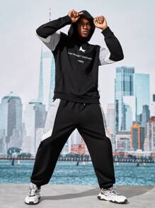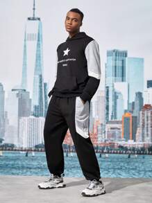 Street Life Guys Star And Slogan Graphic Kangaroo Pocket Hoodie & Joggers