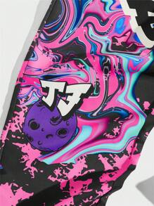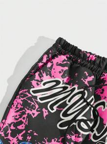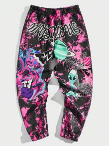 Street Life Men Tie Dye Alien & Letter Graphic Drawstring Waist Pants