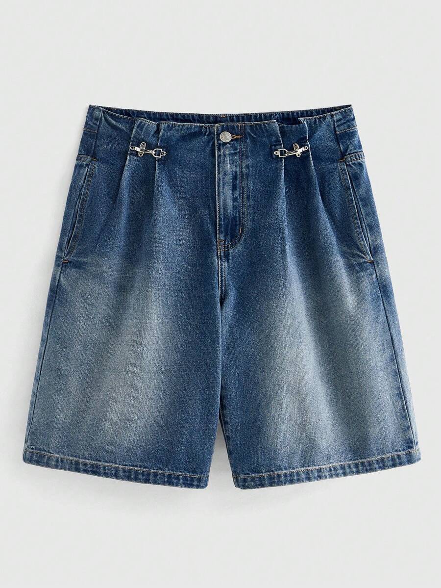 Street Life Men's Asymmetrical Waist Airplane Buckle Denim Shorts