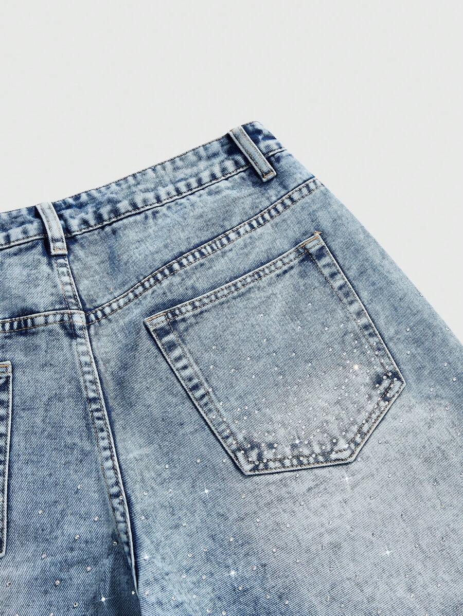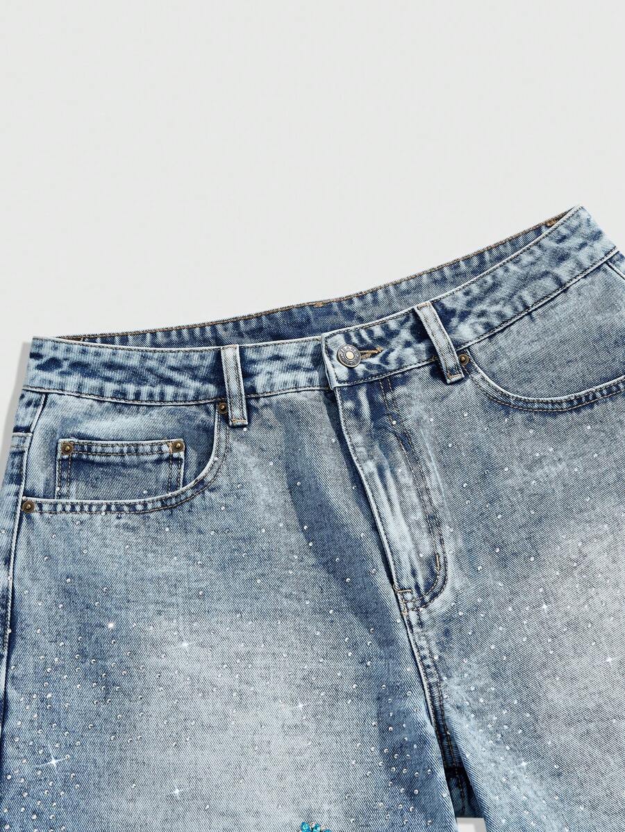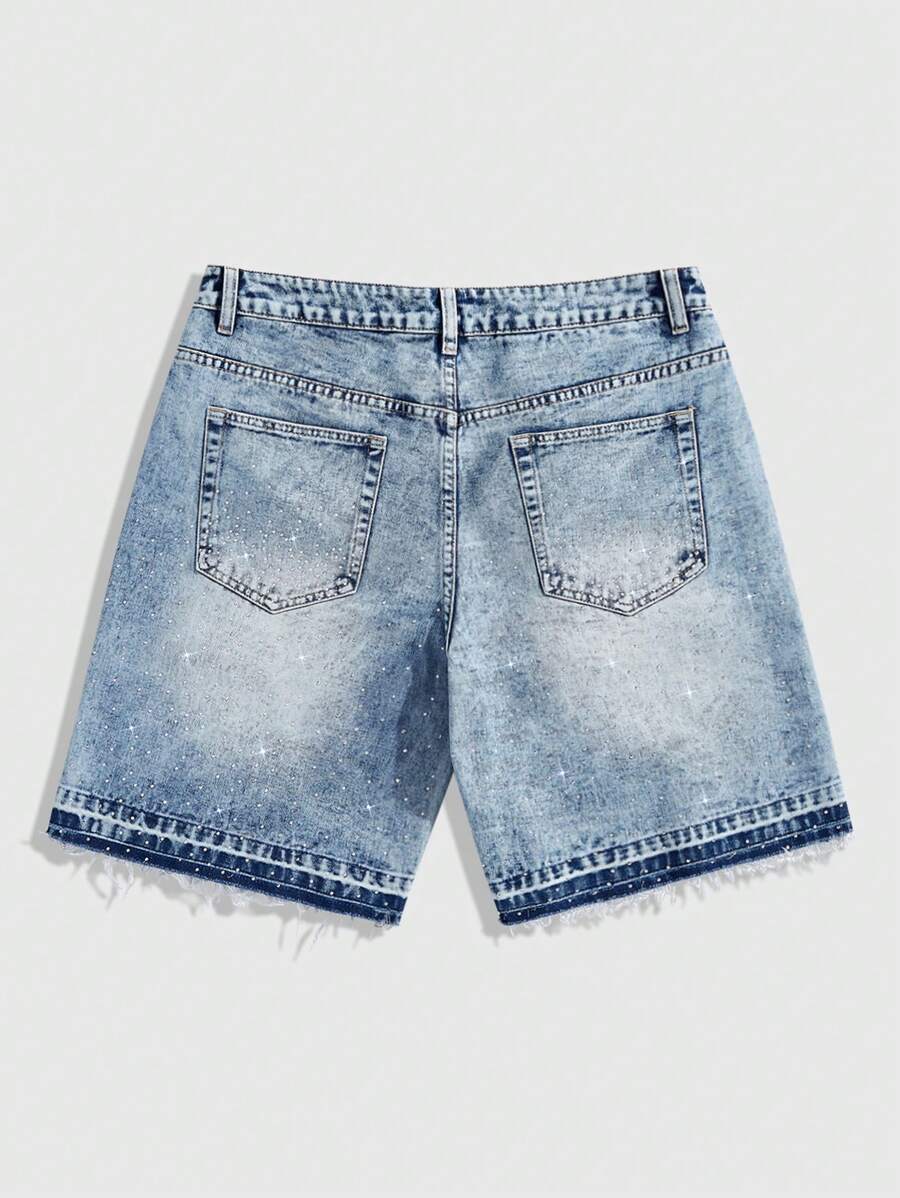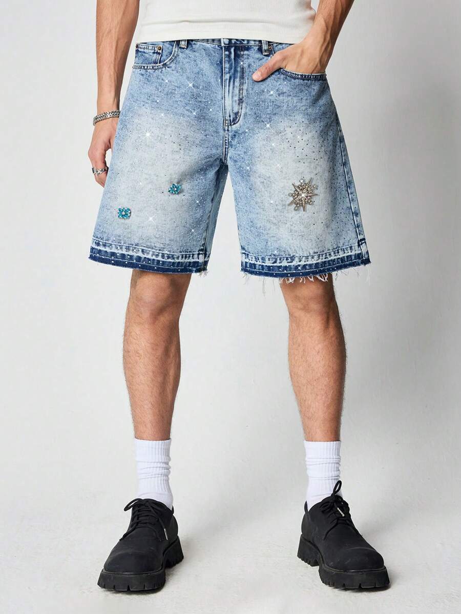 Street Life Men's Avant Loose Casual Denim Shorts With Diamond Embellished Pockets