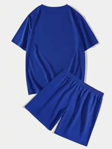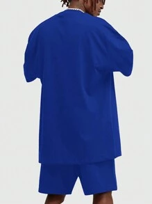 Street Life Men's Cartoon & Letter Printed Drop Shoulder Sleeve T-shirt And Shorts Set