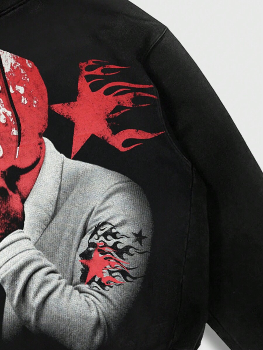 Street Life Men's Casual Character Graphic Print Drawstring Hoodie, Autumn/Winter