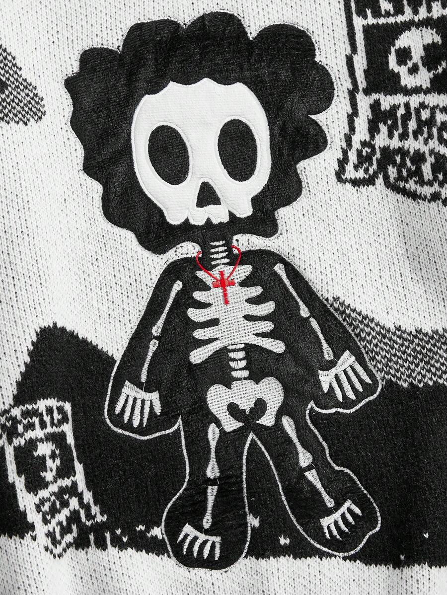 Street Life Men's Casual Crew Neck Skeleton Print Long Sleeve Sweater, Autumn/Winter