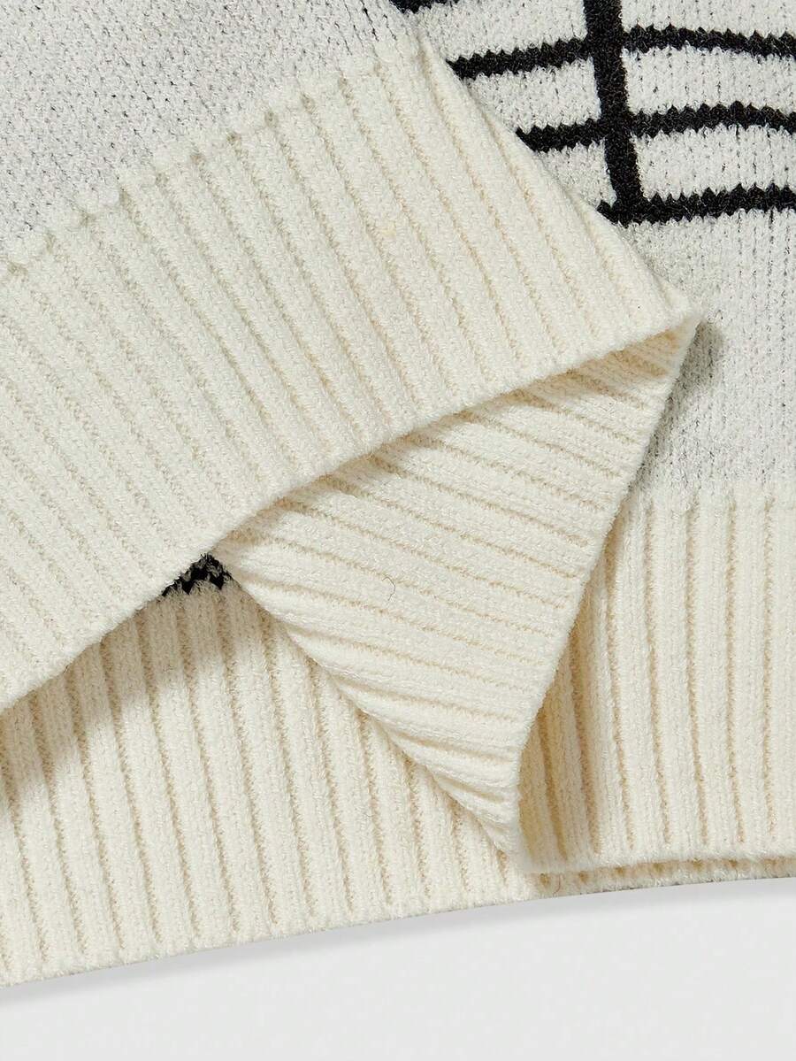 Street Life Men's Casual Drop Shoulder Crew Neck Musical Note Jacquard Knit Sweater