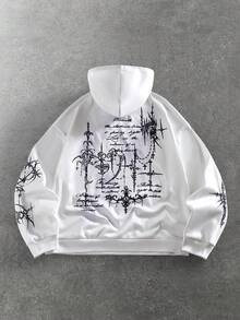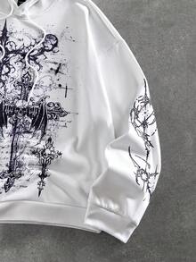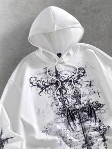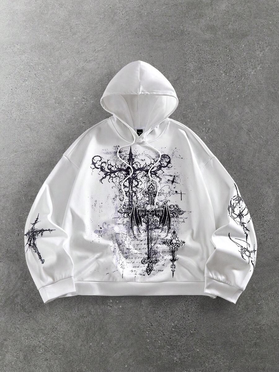 Street Life Men's Casual Fashionable Street Cross & Slogan Print Drawstring Hoodie, Spring/Autumn