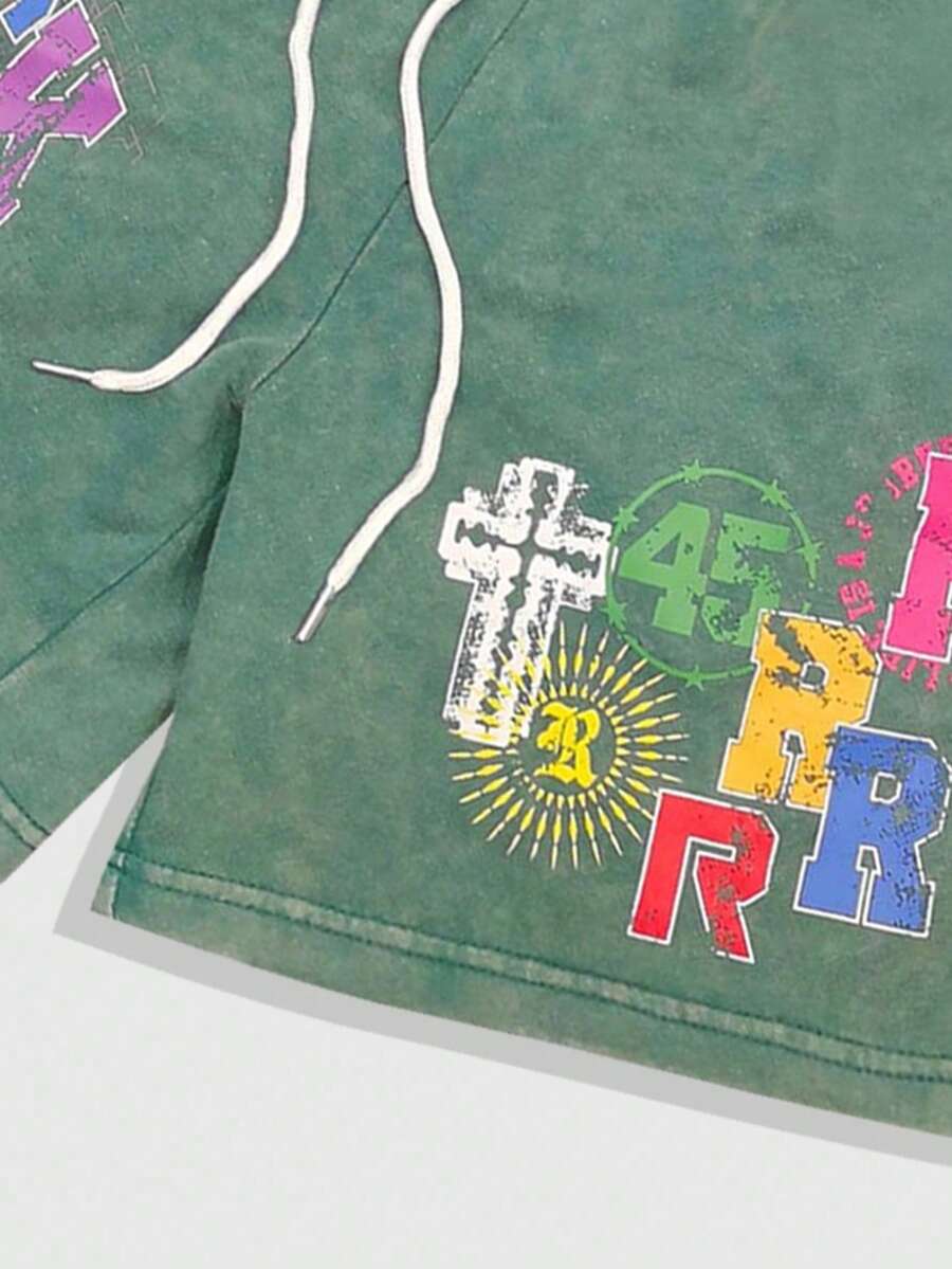 Street Life Men's Casual Letter Print Drawstring Waist Shorts, Summer
