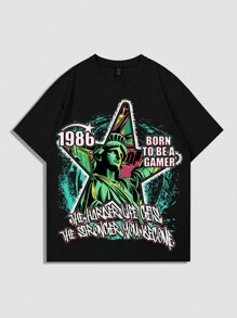 Street Life Men's Casual Logo & Star Graphic Round Neck Short Sleeve T-Shirt