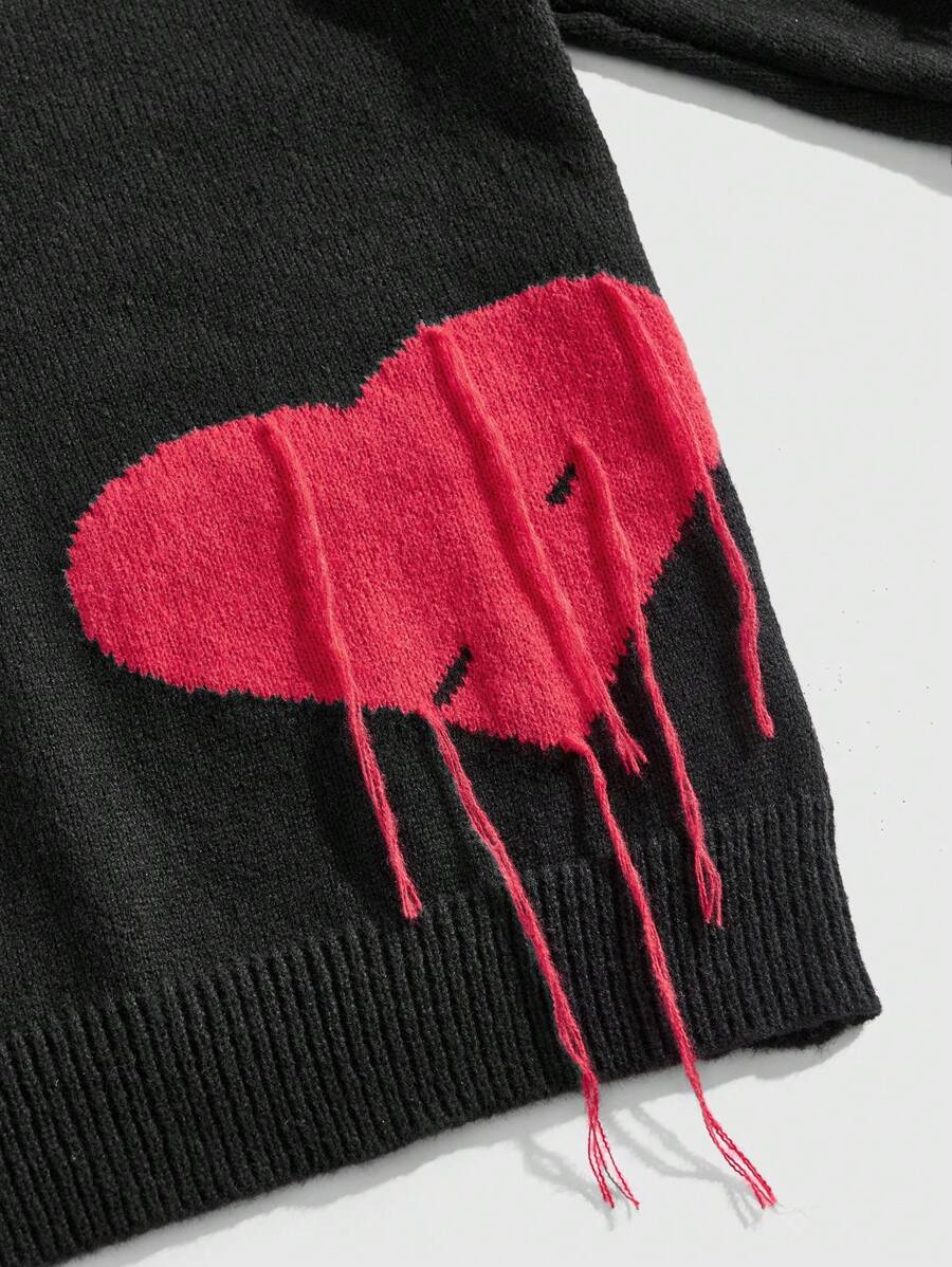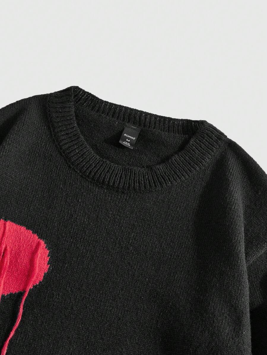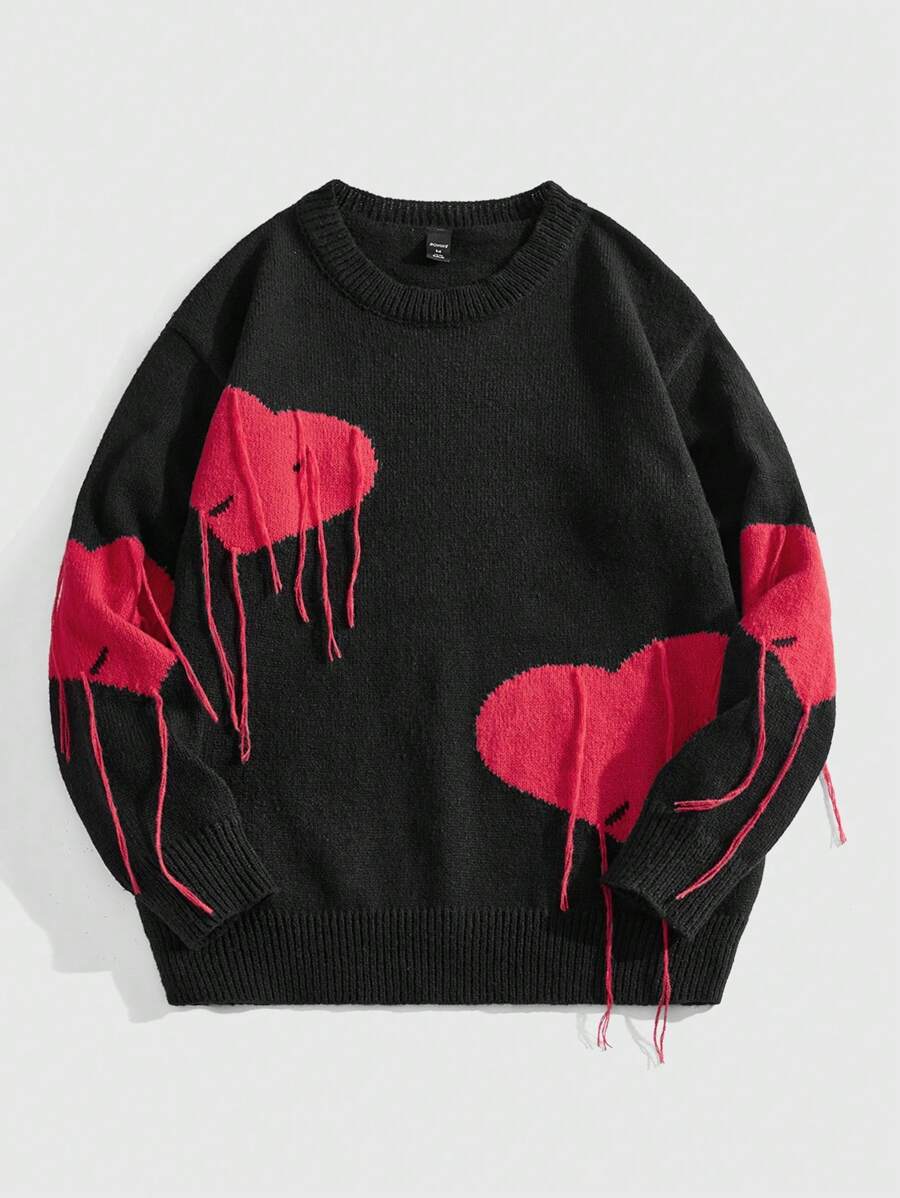 Street Life Men's Casual Loose Fit Heart Pattern Crew Neck Knitted Pullover Sweater, Fall/Winter