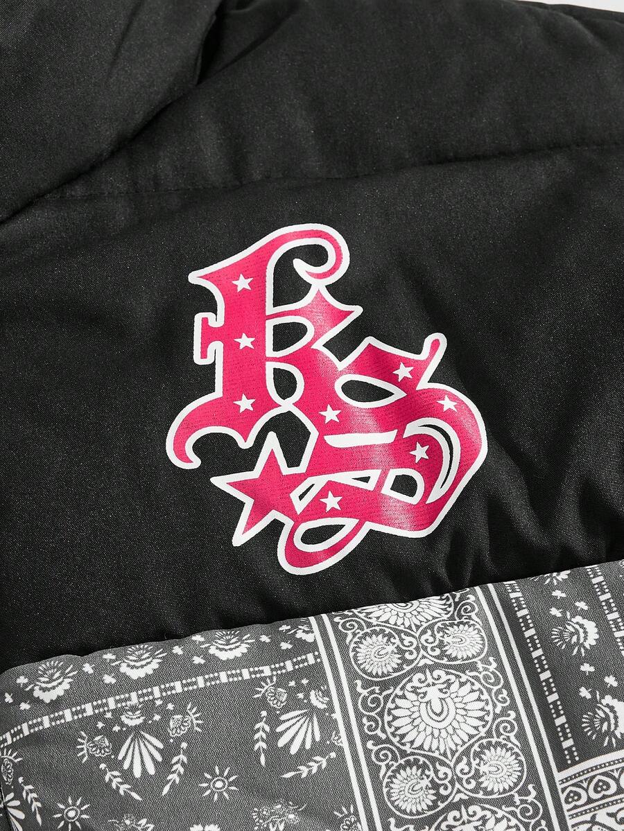 Street Life Men's Casual Patchwork Print Stand Collar Padded Coat, Winter