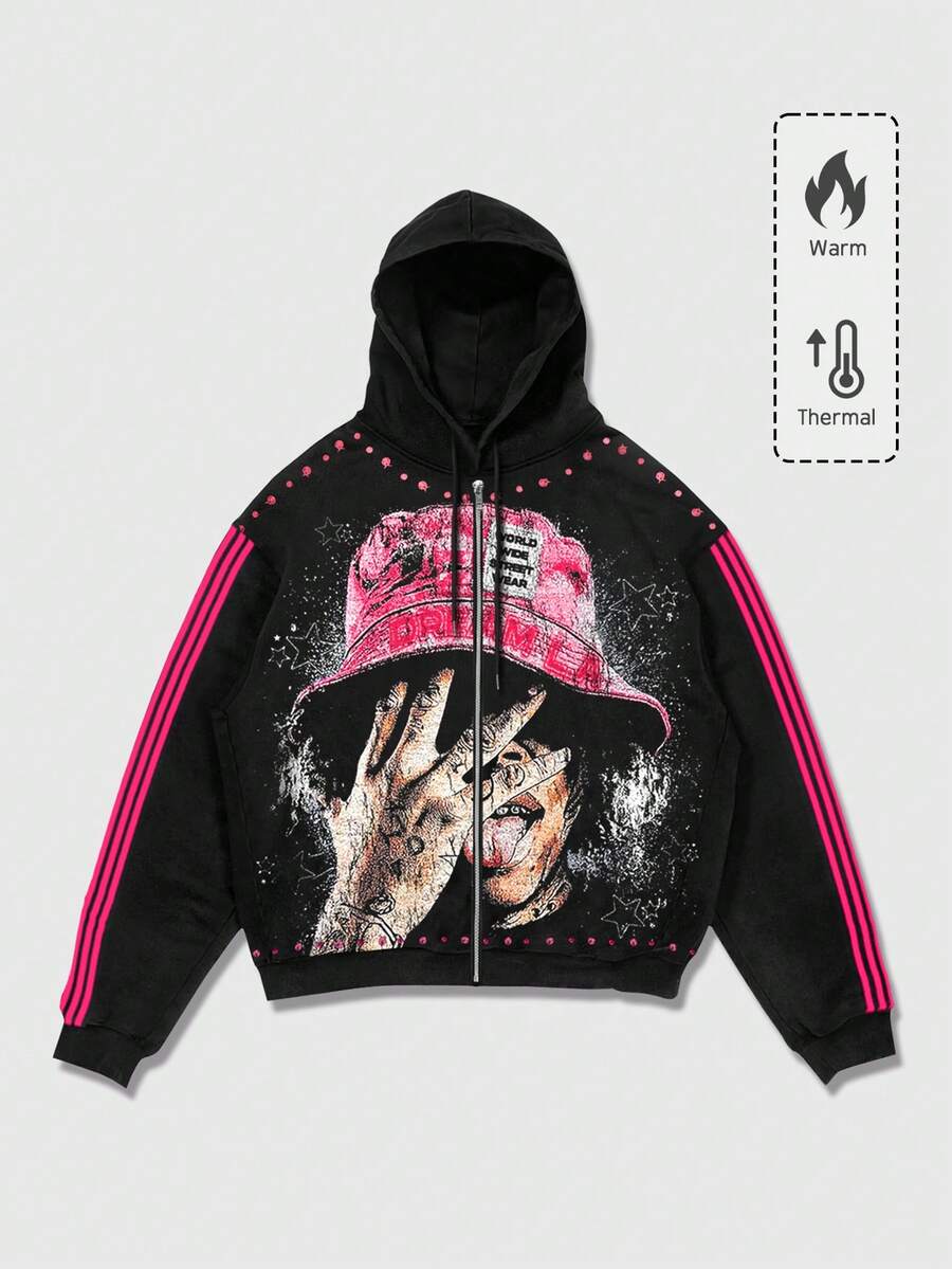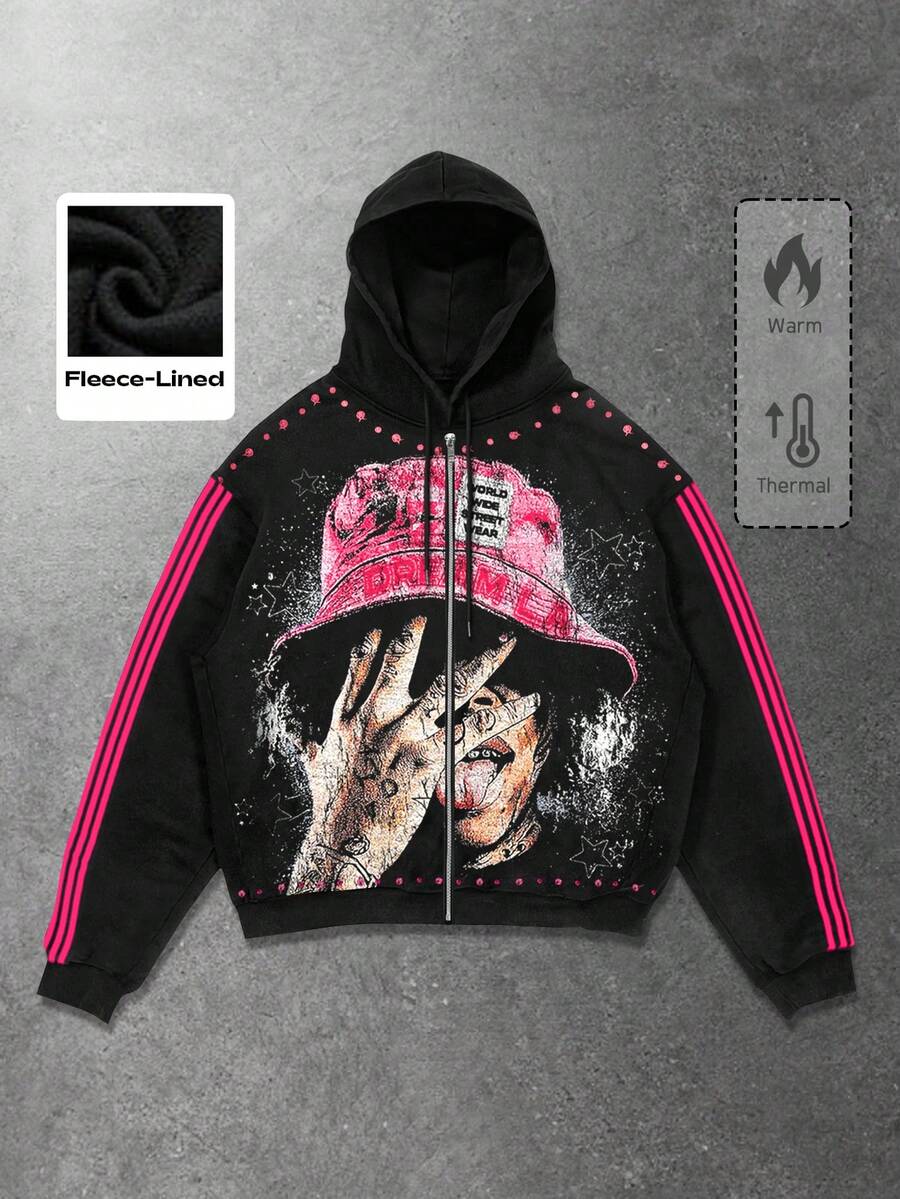 Street Life Men's Casual Street Style Zip-Up Hoodie, Autumn/Winter, Long Sleeve Top