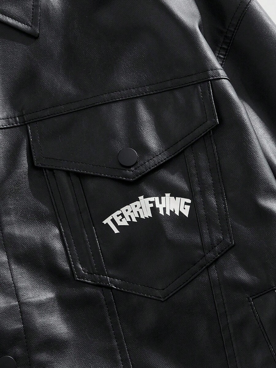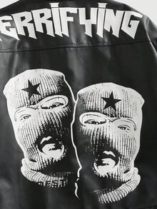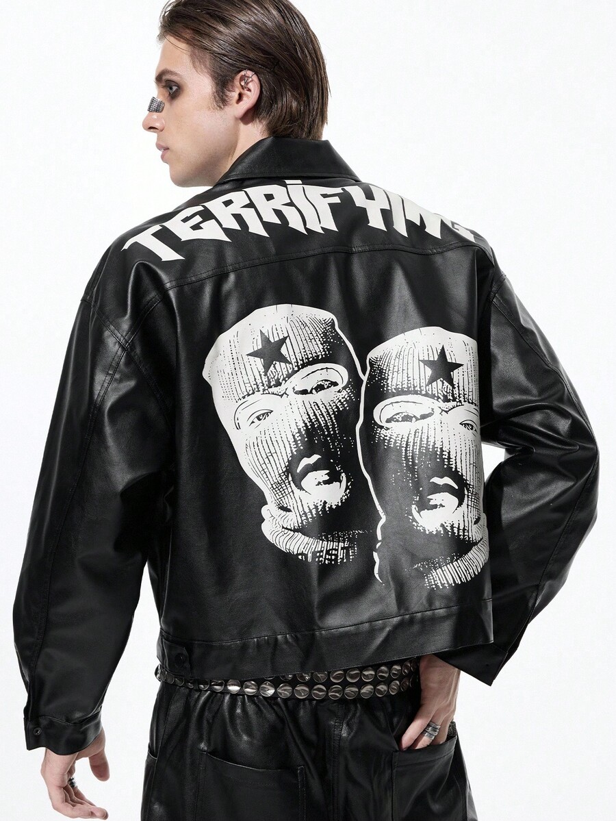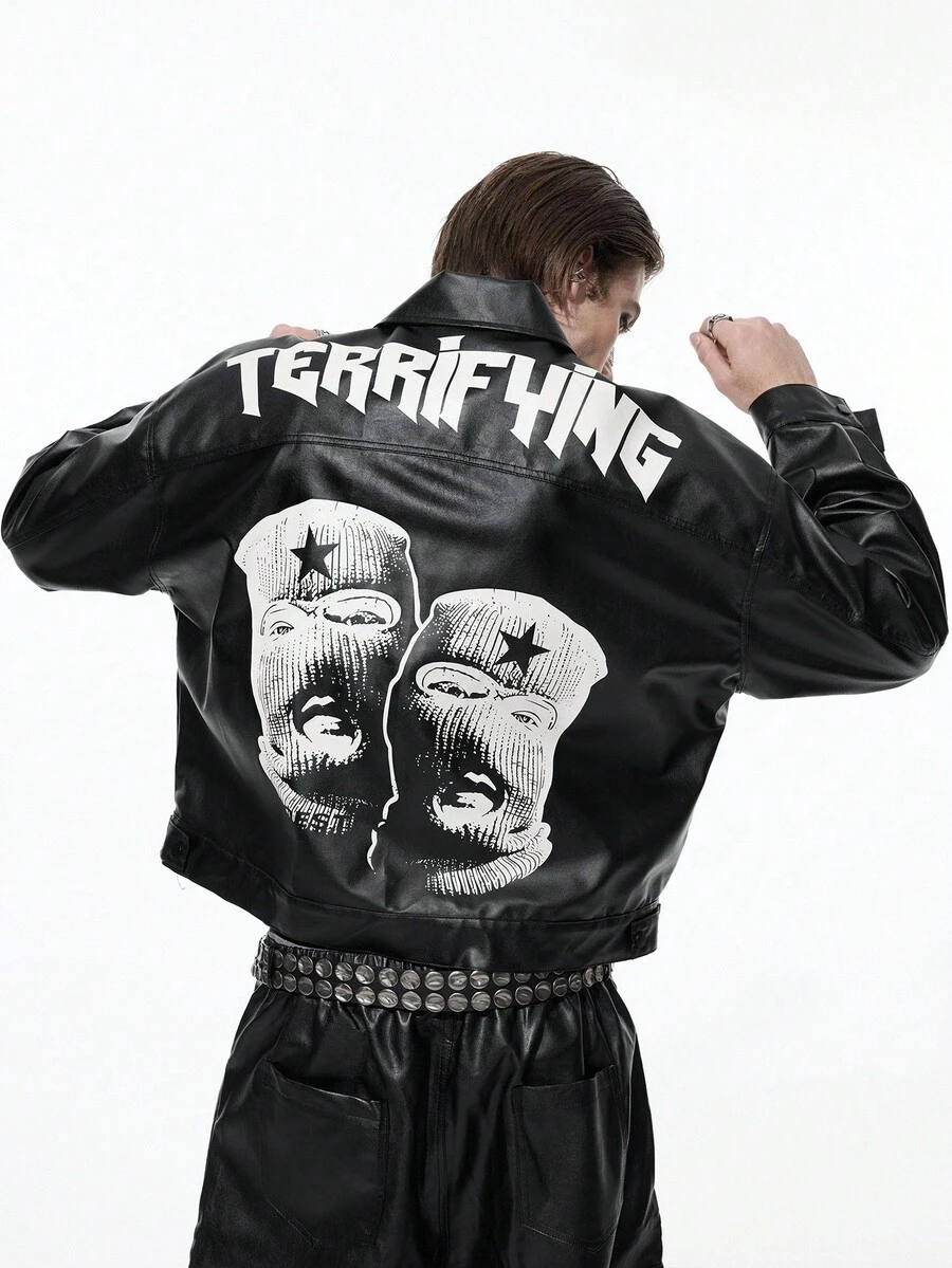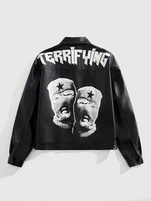 Street Life Men's Fashion Figure & Letter Print PU Jacket, Fall Winter