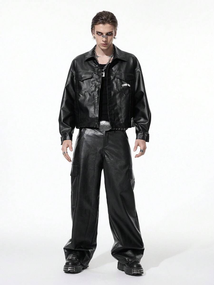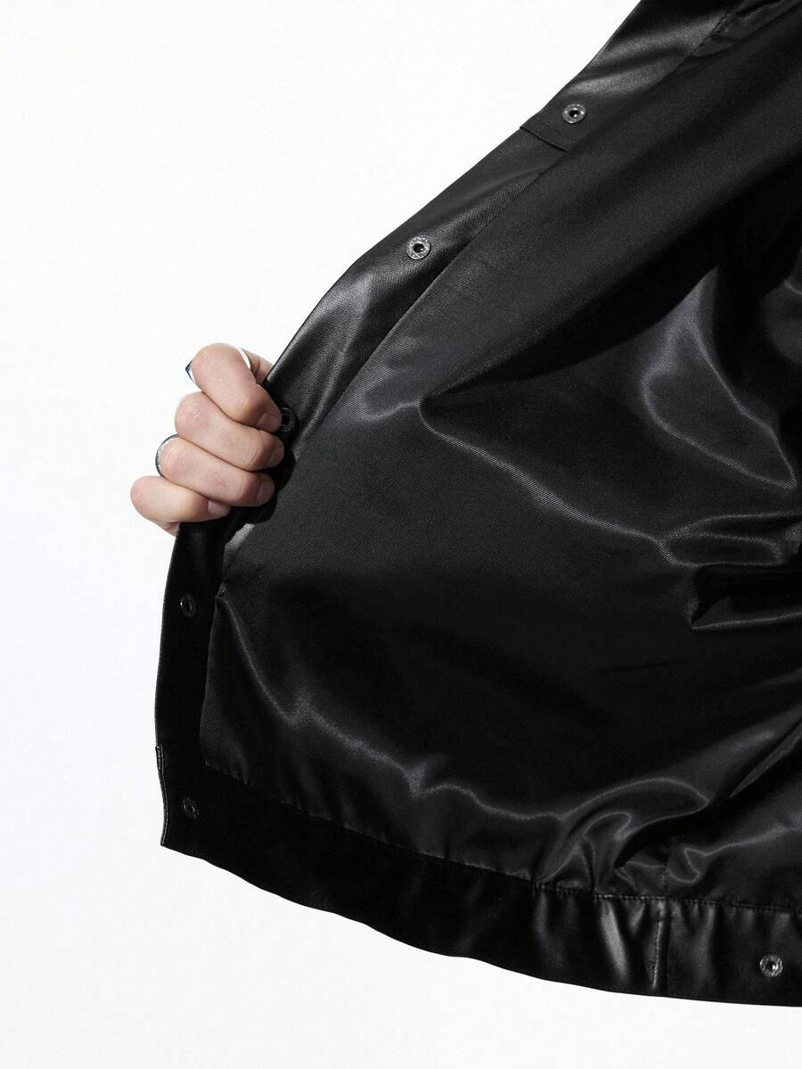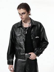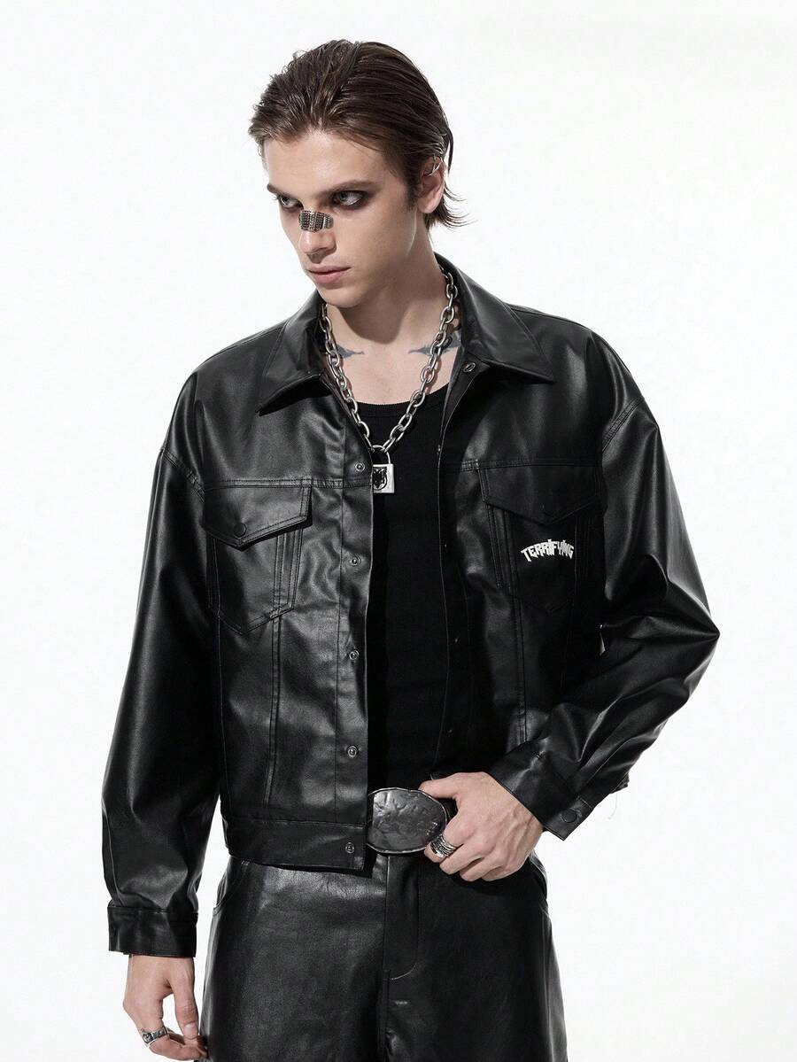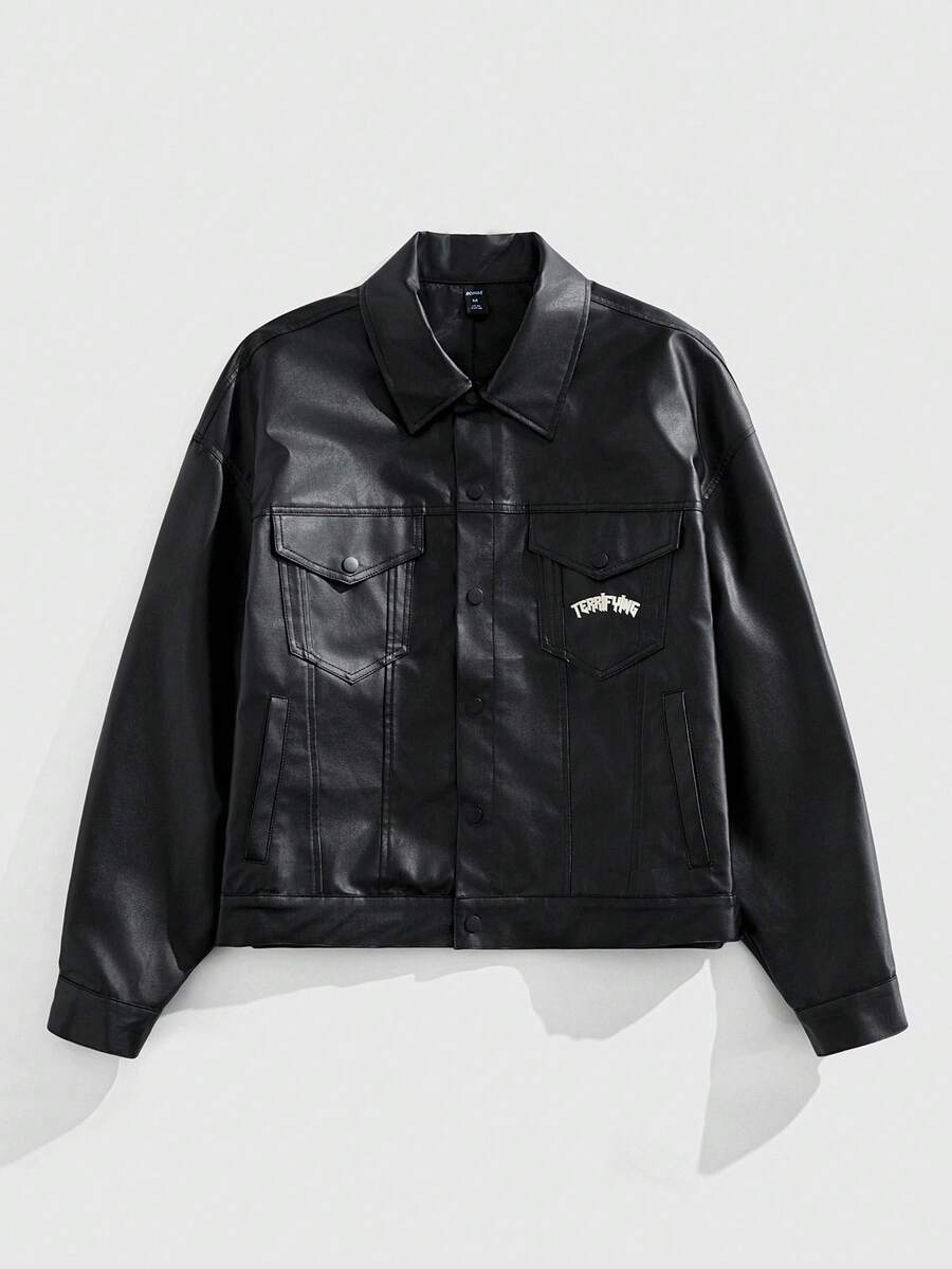 Street Life Men's Fashion Figure & Letter Print PU Jacket, Fall Winter