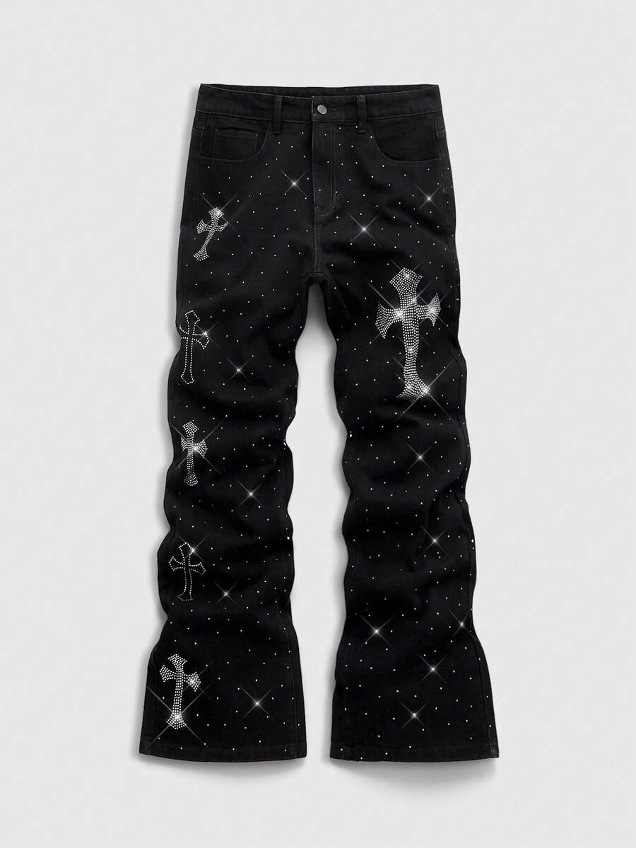Street Life Men's Fashion Rhinestone Cross Embellished Denim Jeans