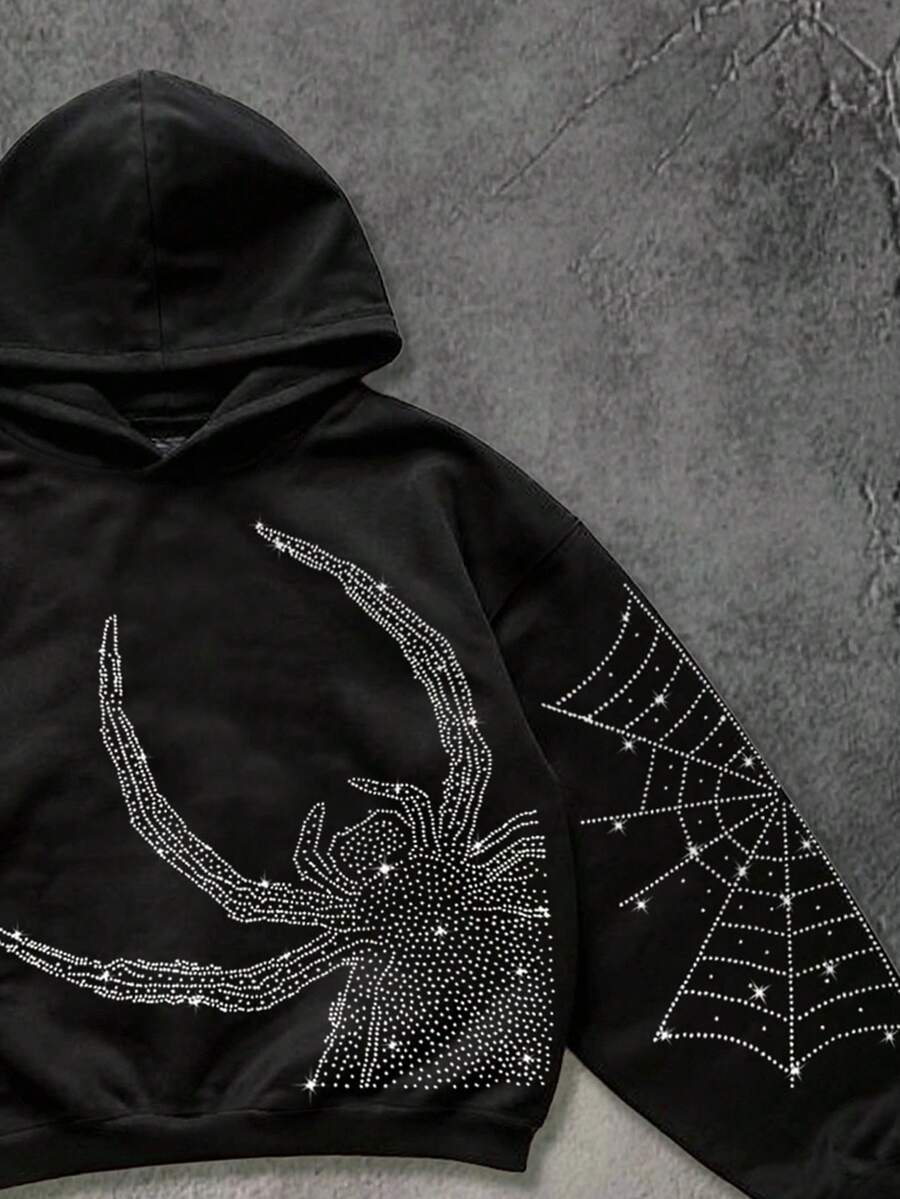 Street Life Men's Fashionable Casual Sparkling Diamond Spider Hoodie, Fall
