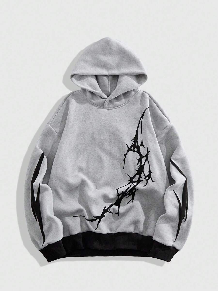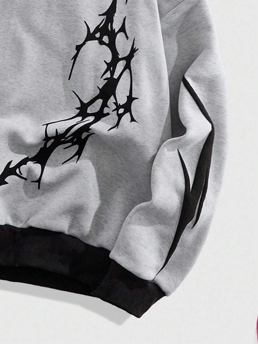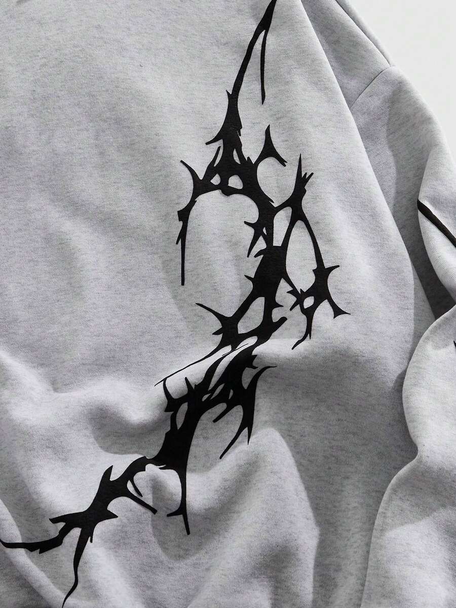 Street Life Men's Foil Print Long Sleeve Casual Loose Hoodie Sweatshirt, Autumn/Winter