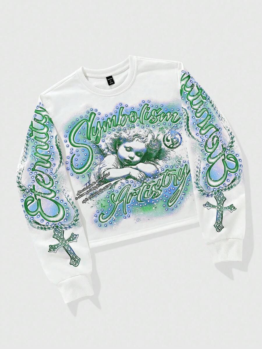Street Life Men's Graphic Print Crew Neck Long Sleeve Pullover Angel Sweatshirt , Fall