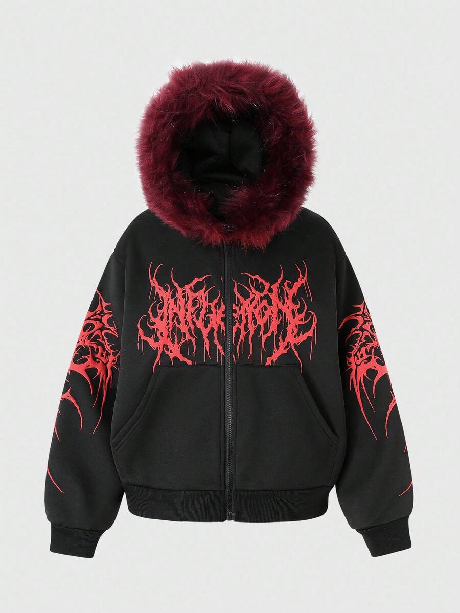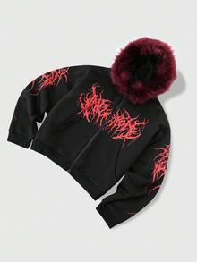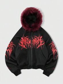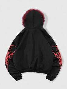 Street Life Men's Graphic Print Thermal Lined Gothic Hoodie Sweatshirt With Fur Collar, Autumn/Winter