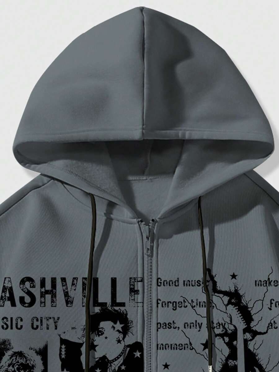 Street Life Men's Hooded Sweatshirt With Slogan And Character Print