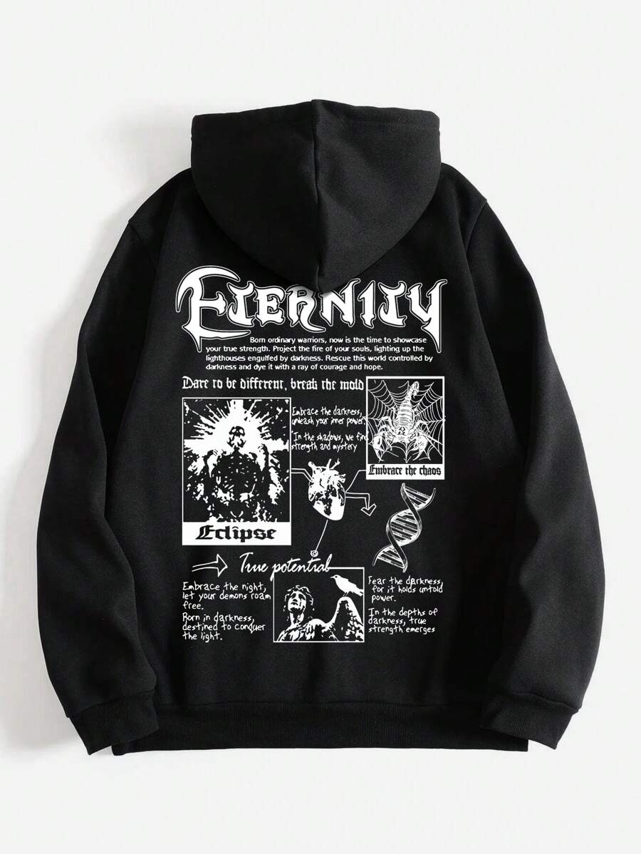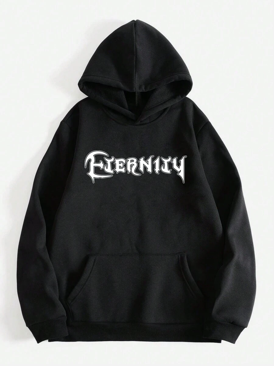 Grunge Punk Men's Kangaroo Pocket Hooded Sweatshirt With English Letter Print