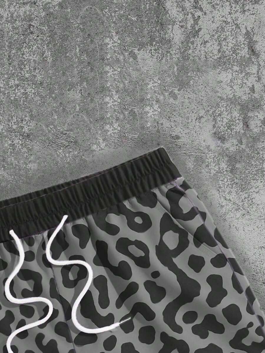 Street Life Men's Leopard Print Elastic Waist Drawstring Casual Summer Shorts