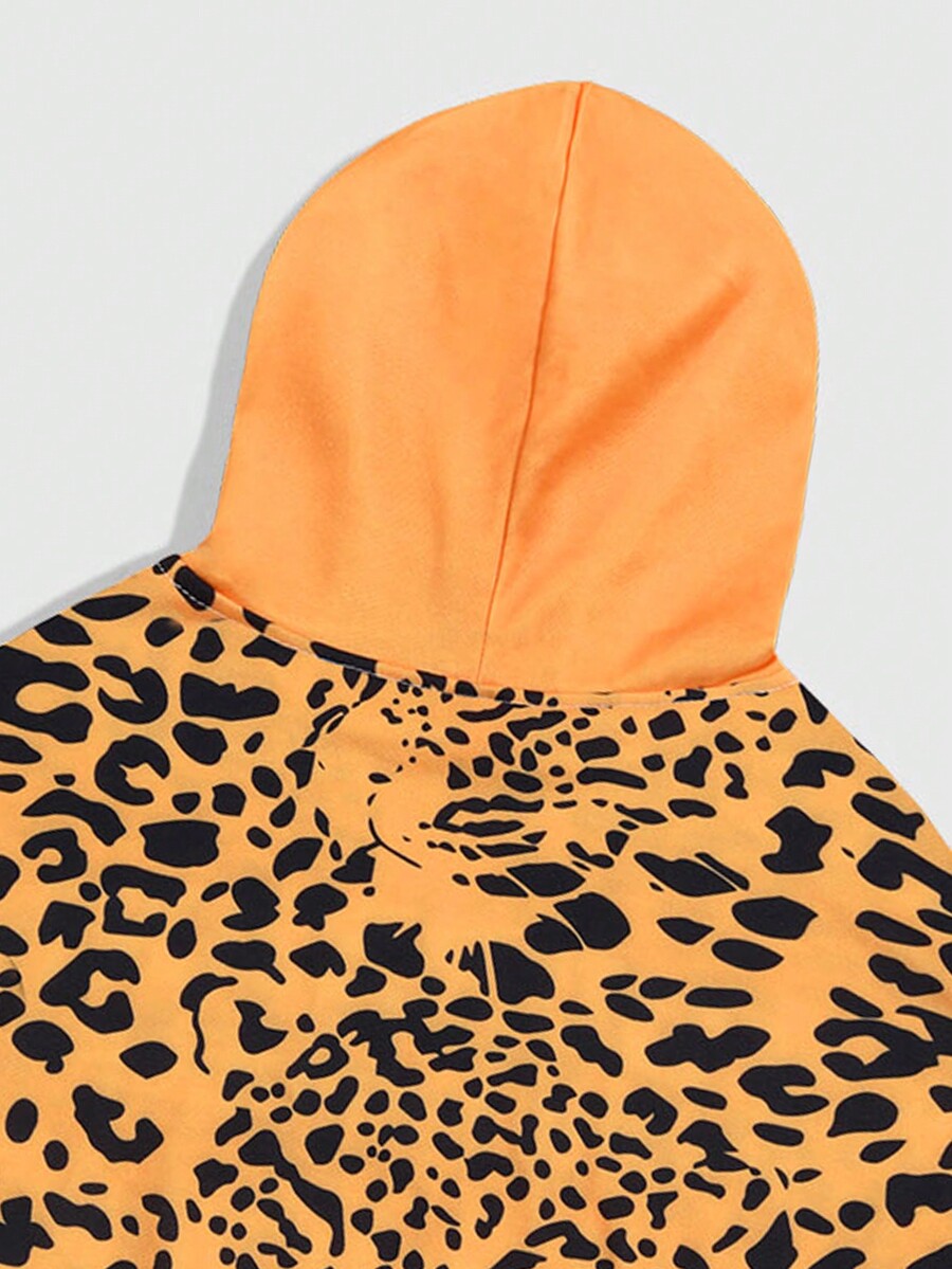 Street Life Men's Leopard Print & Letter Graphic Hooded Sweatshirt