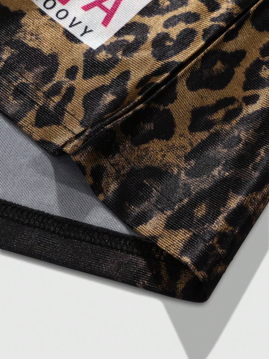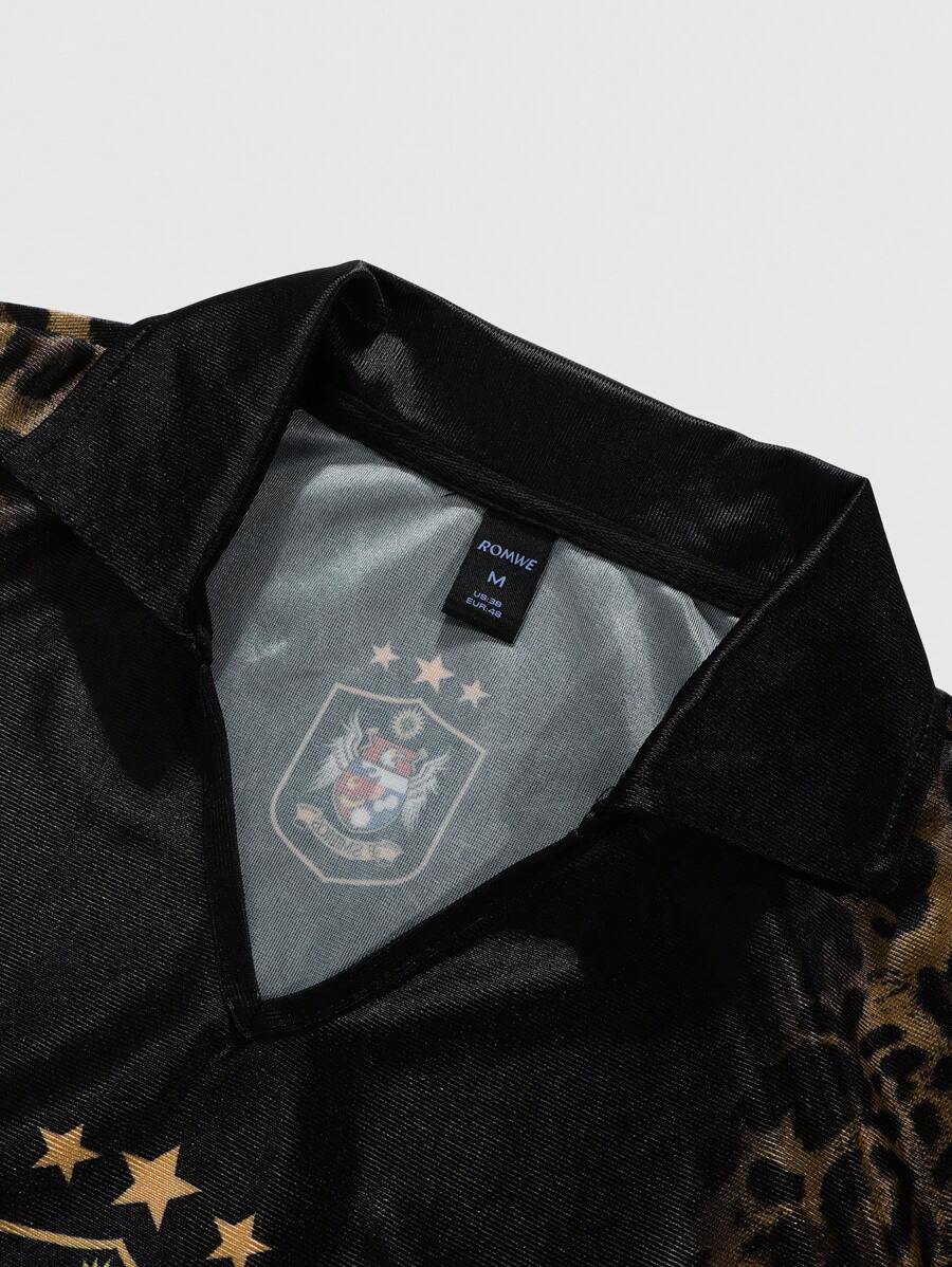 Men's Leopard Print Letter Print Fashionable Summer Short-Sleeved Polo Shirt