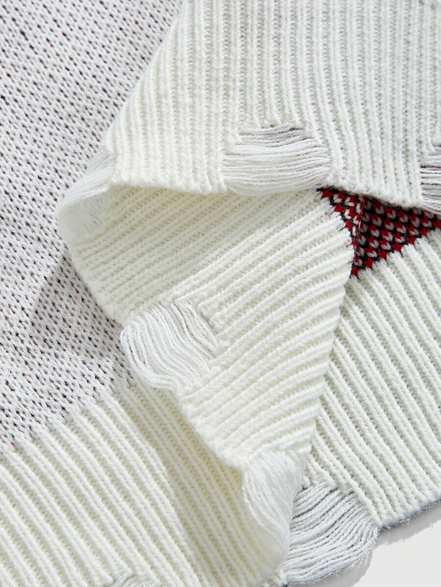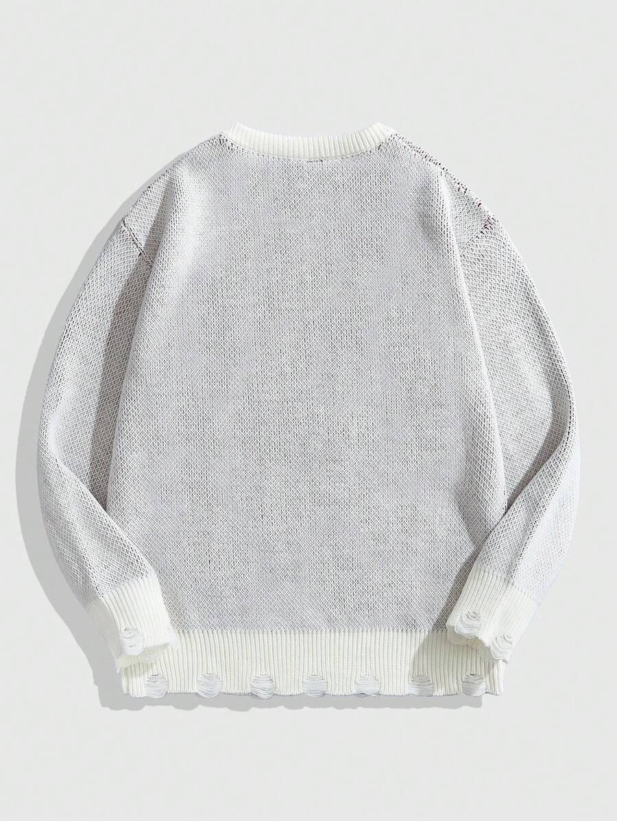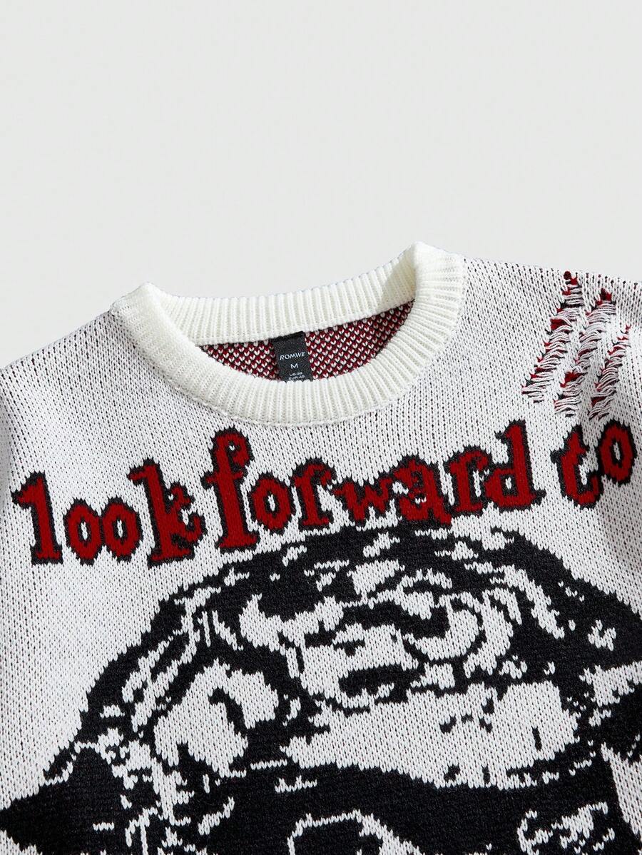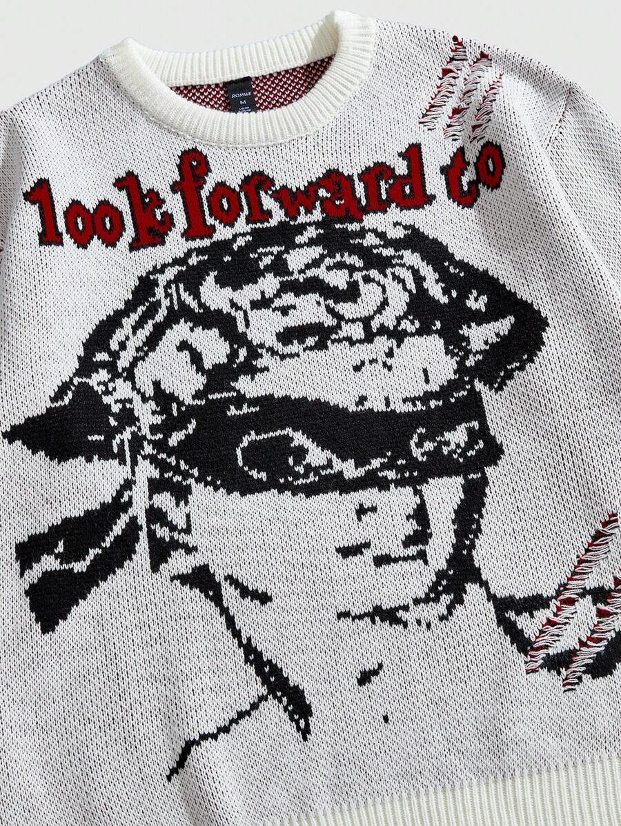 Street Life Men's Portrait Jacquard Knit Casual Sweater, Long Sleeve Crew Neck
