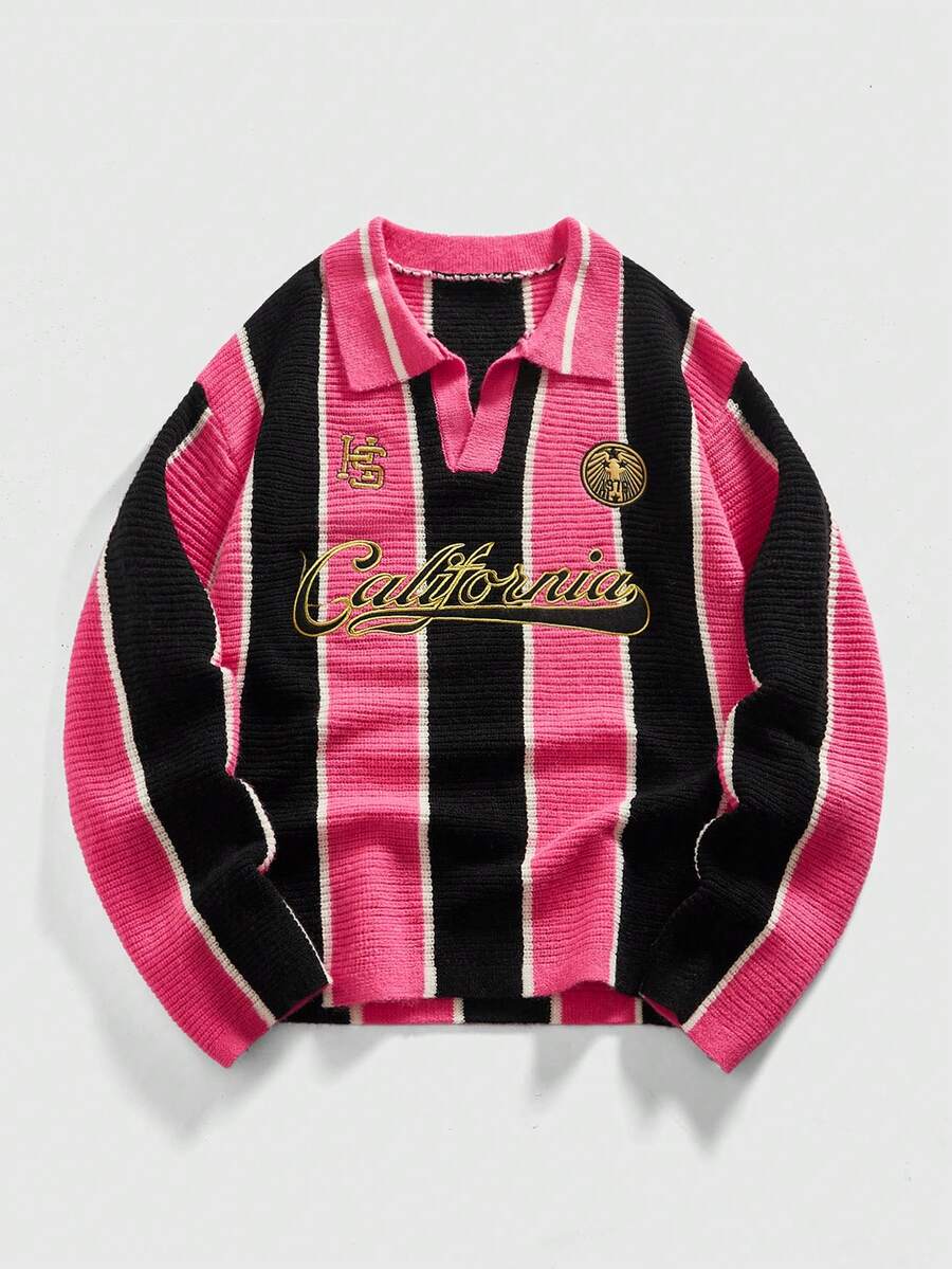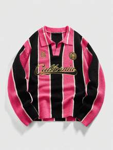 Street Life Men's Retro Collared Football Inspired Knit Sweater, Streetwear Style