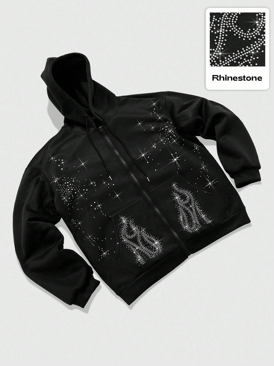Street Life Men's Rhinestone Embellished Sweatshirt, Suitable For Everyday Wear In Autumn/Winter