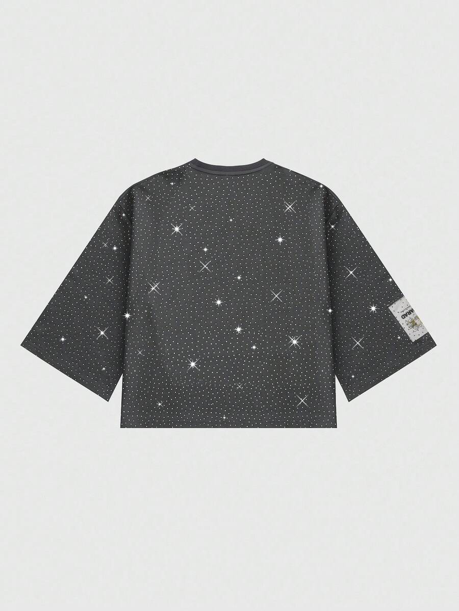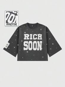 Street Life Men's Rhinestone Embroidered T-Shirt, 3/4 Sleeve, Fall, 2000s Style