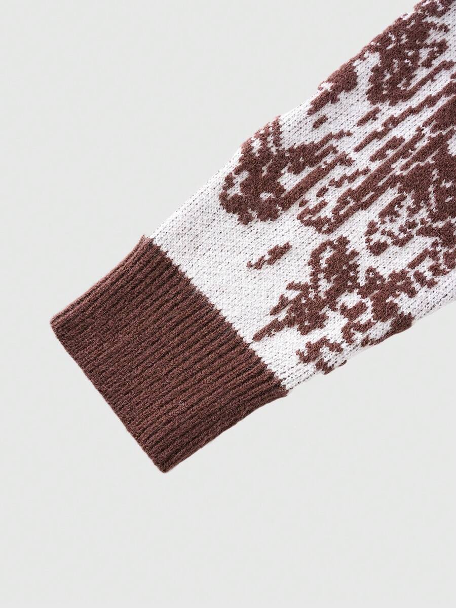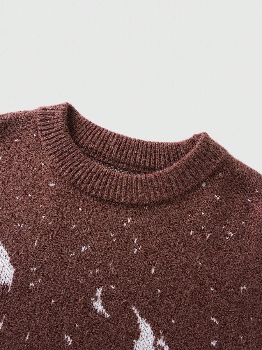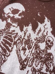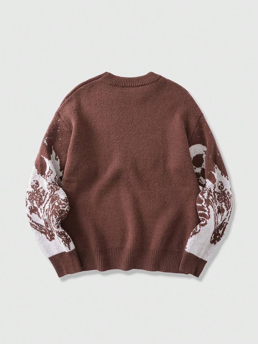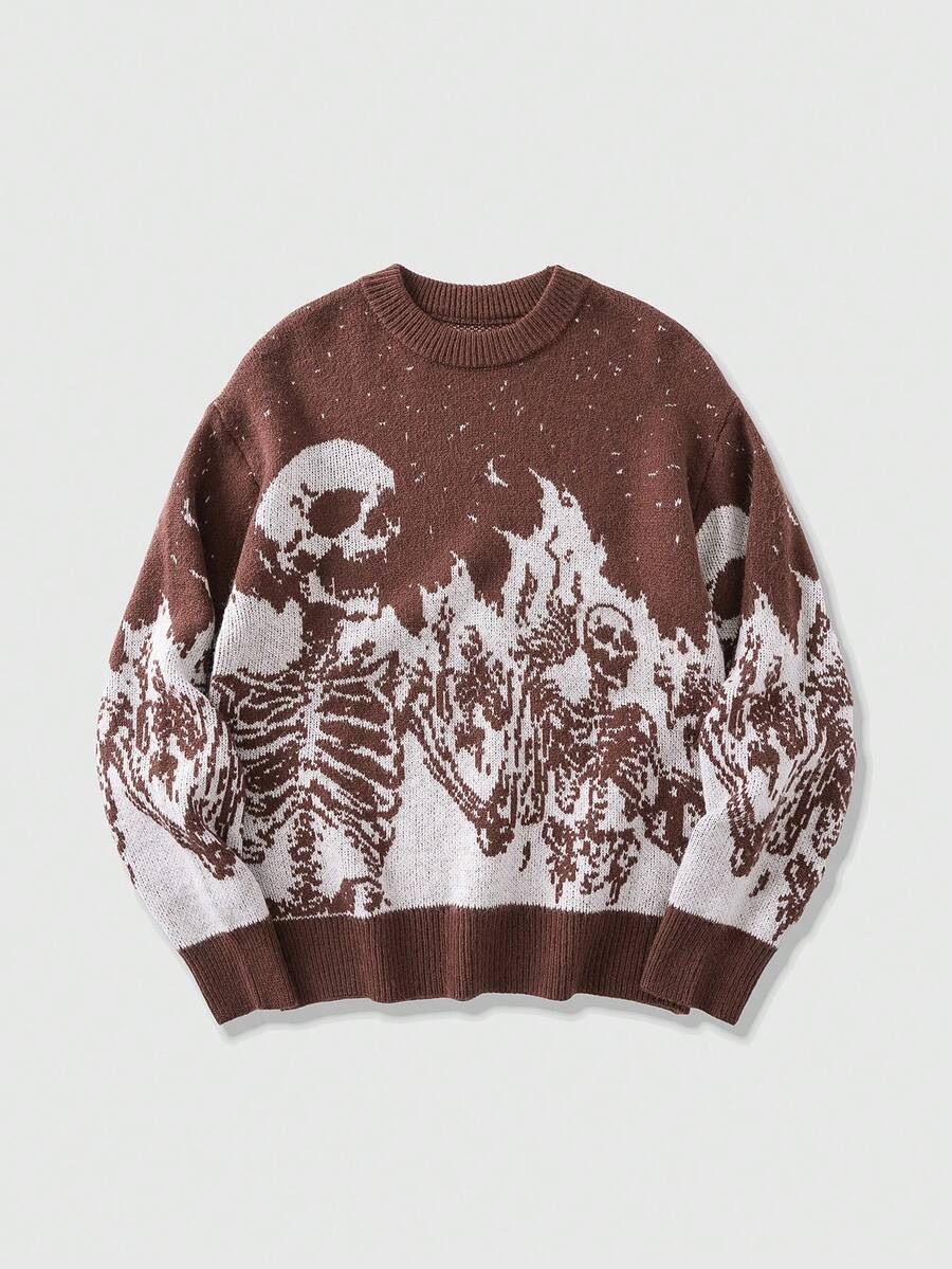 Street Life Men's Skull Jacquard Crew Neck Long Sleeve Sweater, Streetwear, Autumn/Winter