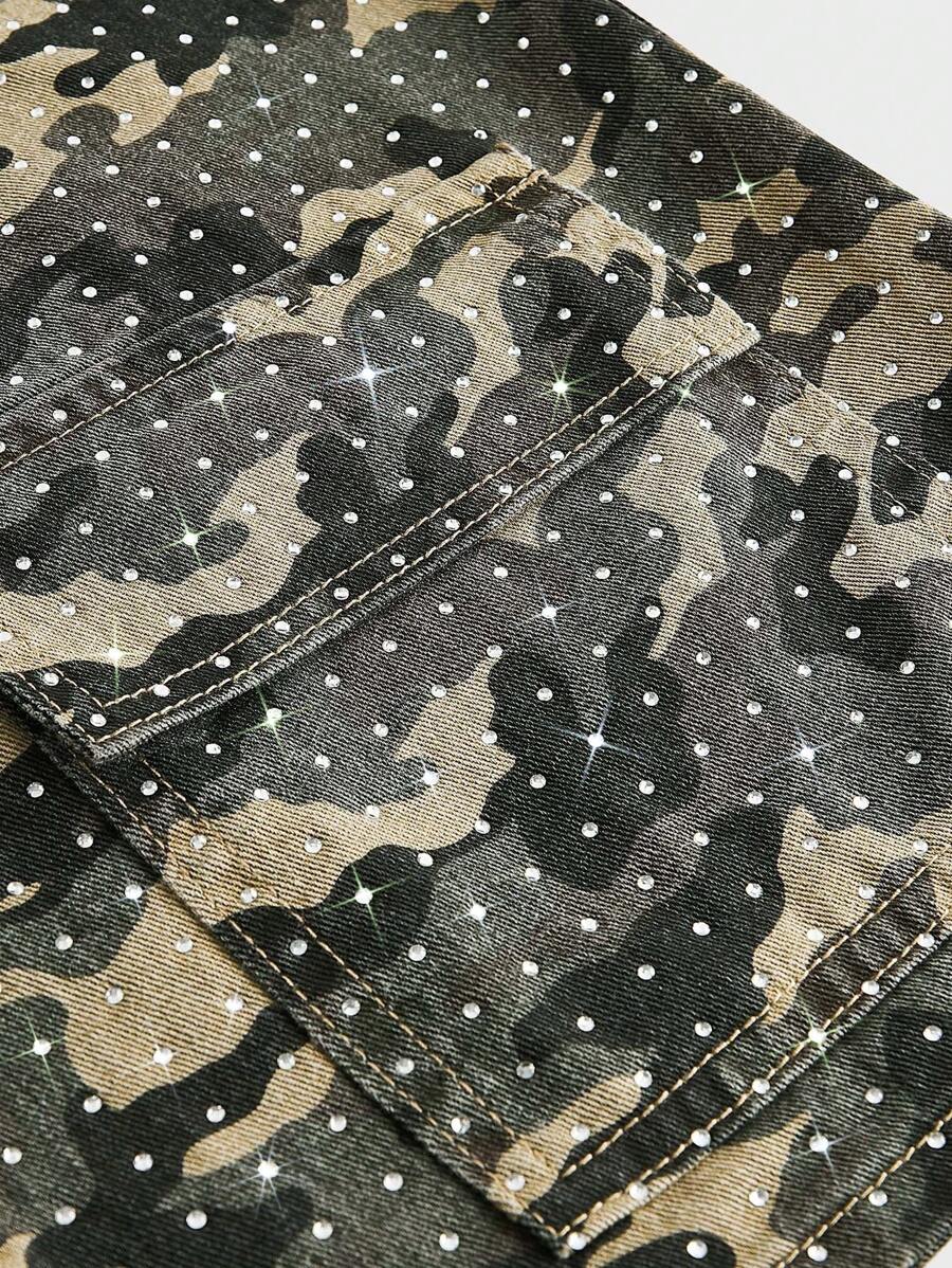 Street Life Men's Sparkling Diamond Camouflage Cargo Denim Shorts