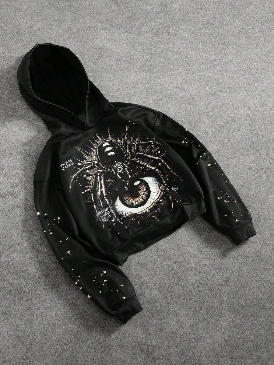 Street Life Men's Spider Print Casual Loose Fit Long Sleeve Hoodie Sweatshirt, Autumn/Winter