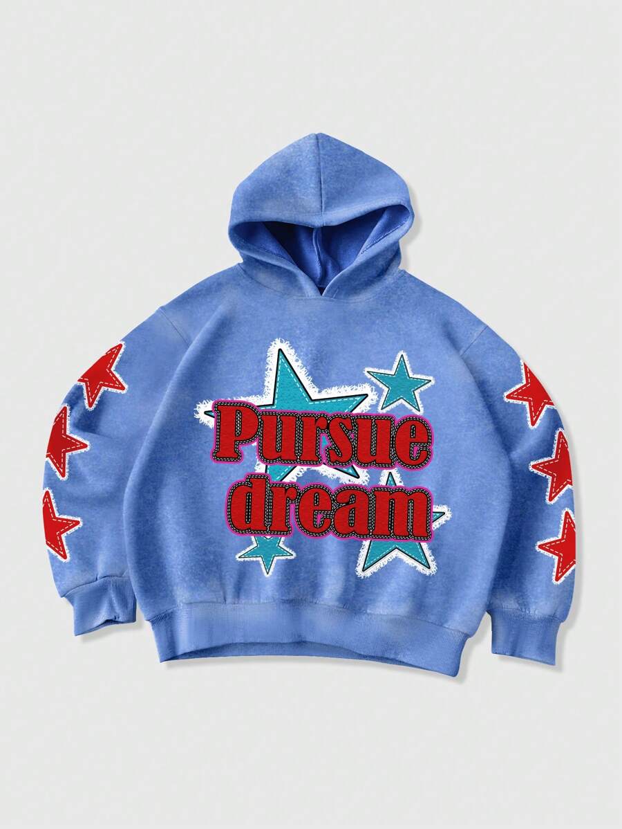 Street Life Men's Star And Letter Print Washed Hooded Sweatshirt, Casual For Autumn
