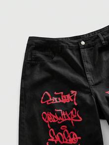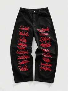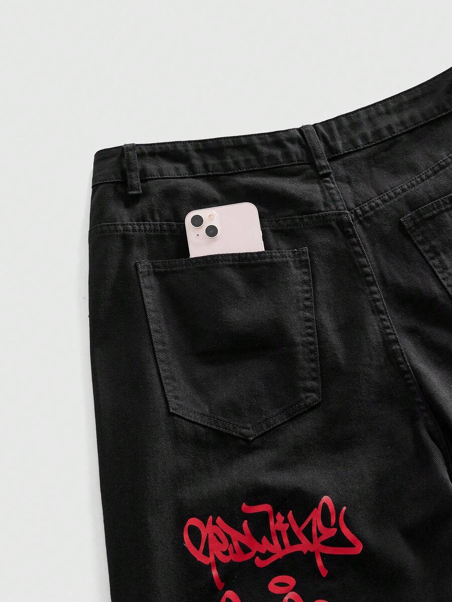 Street Life Men's Street Fashion Letter & Print Jeans