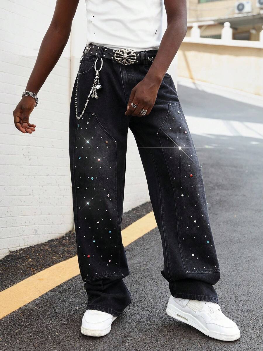 Street Life Men's Street Rhinestone Embellished Pocket Casual Fashion Denim Jeans