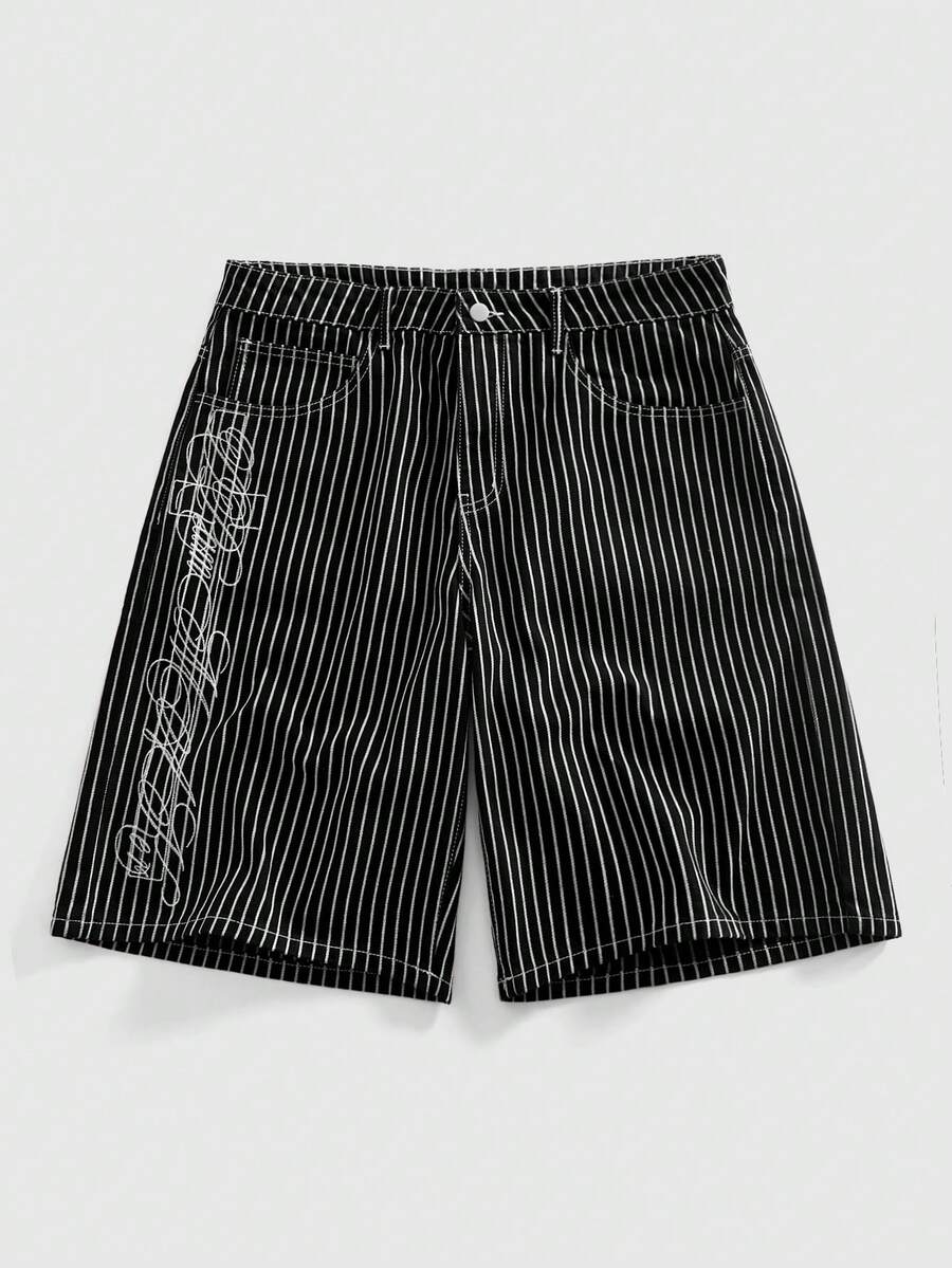 Street Life Men's Striped Letter Embroidered Pocket Casual Denim Shorts