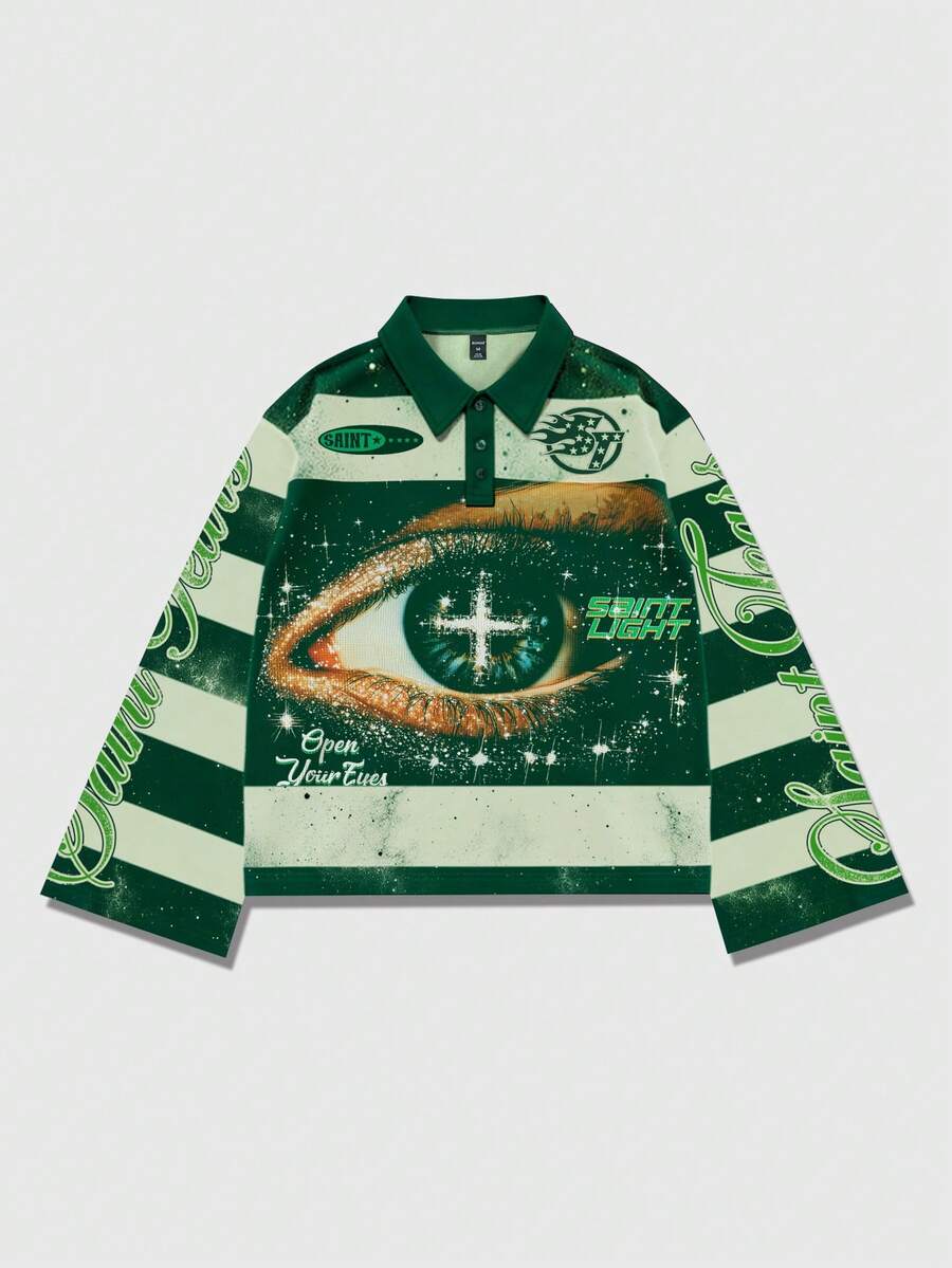 Street Life Men's Striped Polo Collar Long Sleeve T-Shirt, Casual Polo Shirt