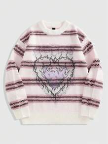 Street Life Men's Striped Print Crew Neck Long Sleeve Sweater