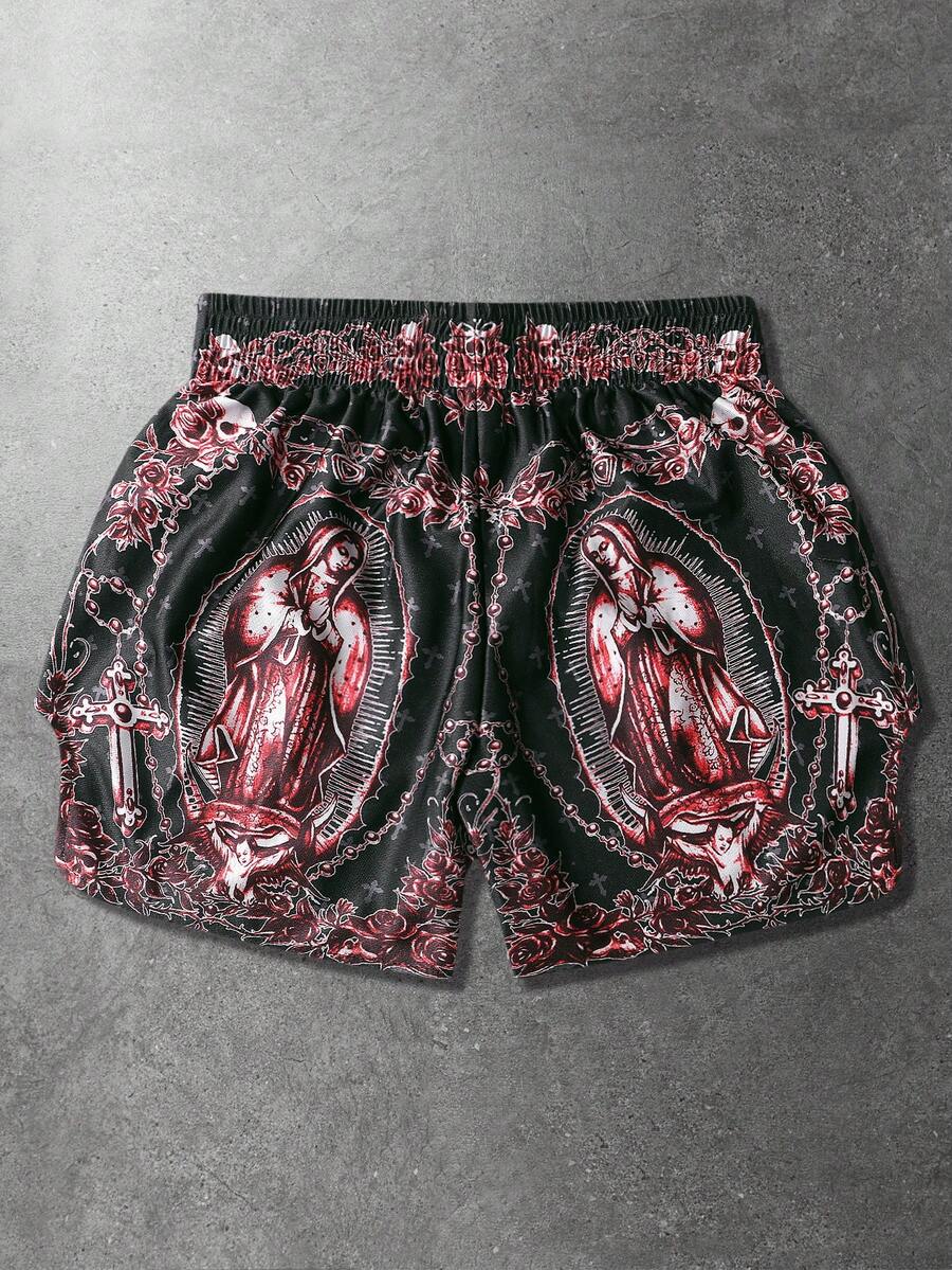 Street Life Men's Summer Fashion Virgin Mary Print Elastic Waist Boxing Shorts