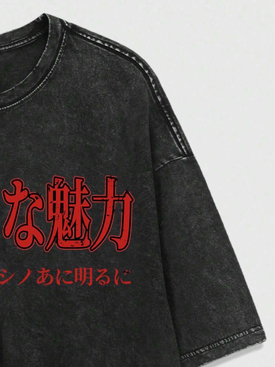 Anime Men's Summer Streetwear Pure Cotton Faded Distressed Person & Japan Style Print Loose T-Shirt