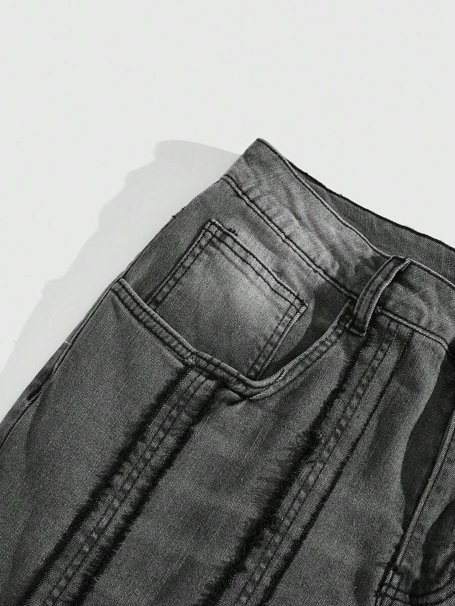 Street Life Men's Washed Patchwork Layered Skinny Fit Flared Jeans, Streetwear Style