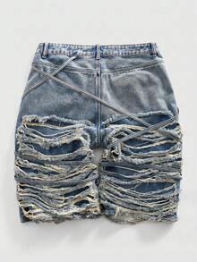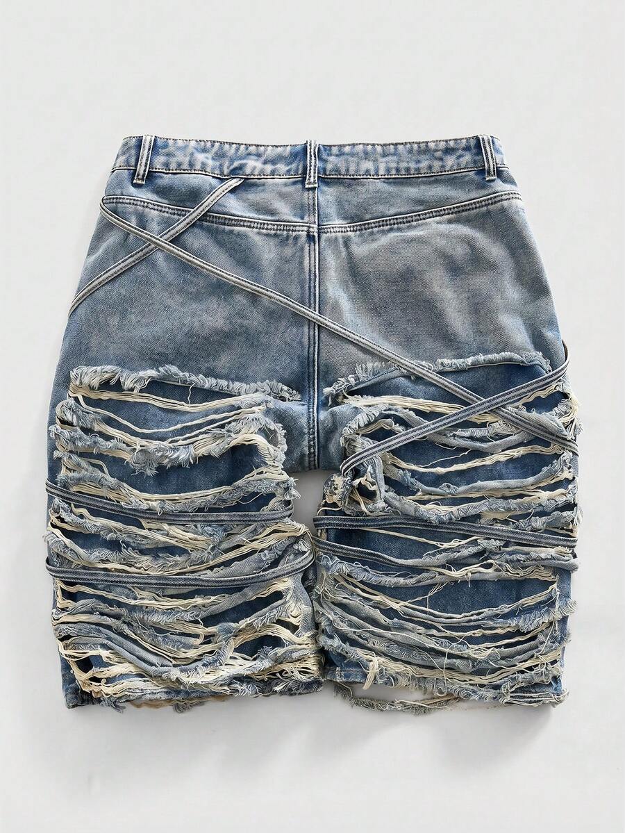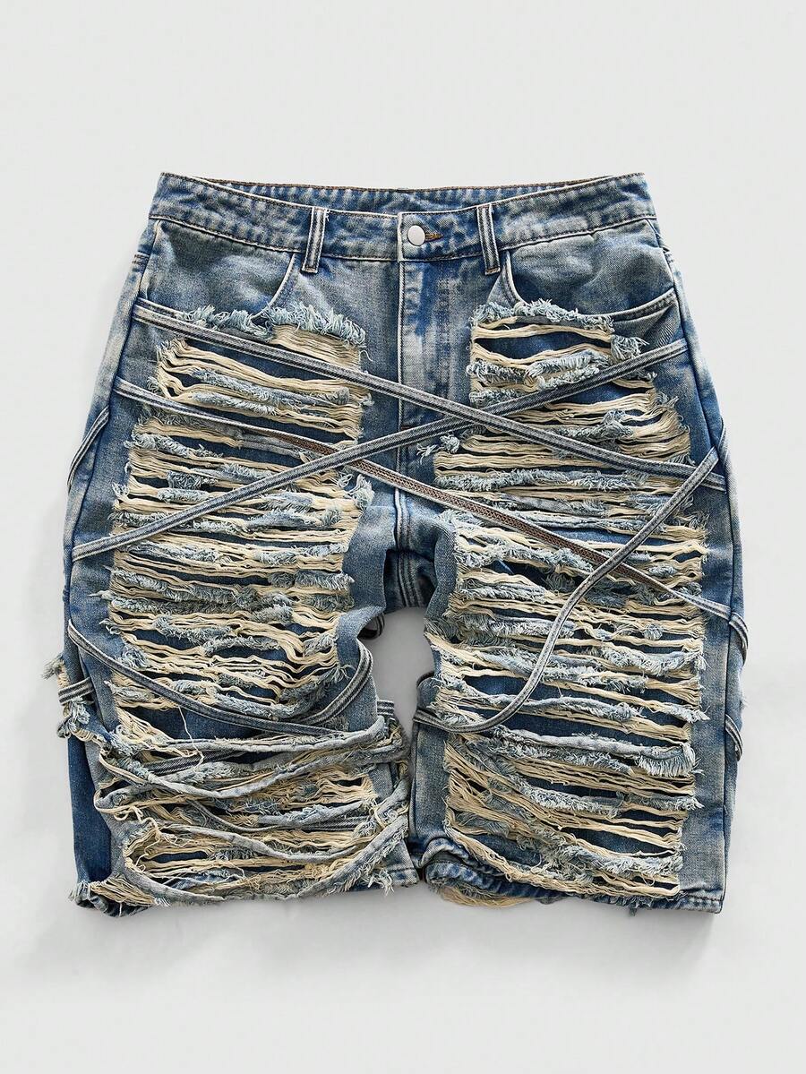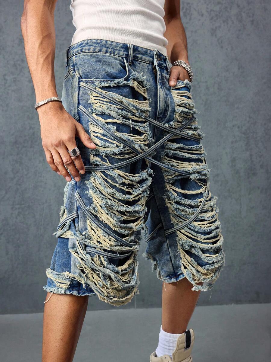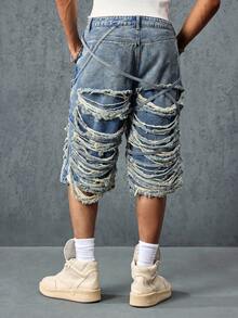 Street Life Spring/Summer Casual Graphic Men'S Distressed Denim 3/4 Length Blue Shorts
