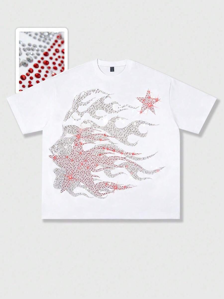 Street Life Spring/Summer Casual Graphic White Men'S Rhinestone Star Graphic Round Neck Casual Street Short Sleeve T-Shirt