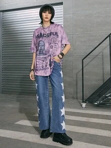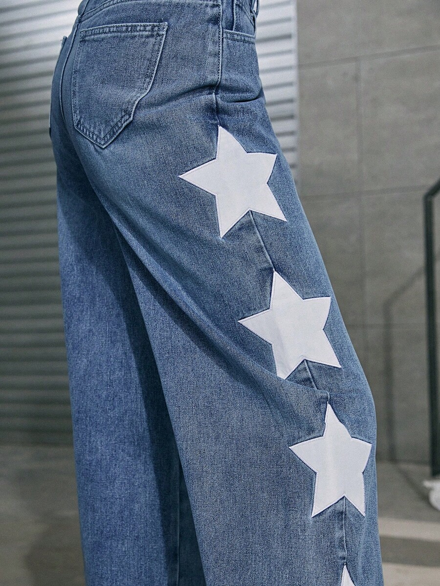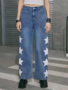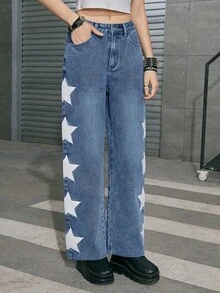 Street Life Star Print Straight Leg Jeans
