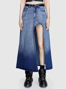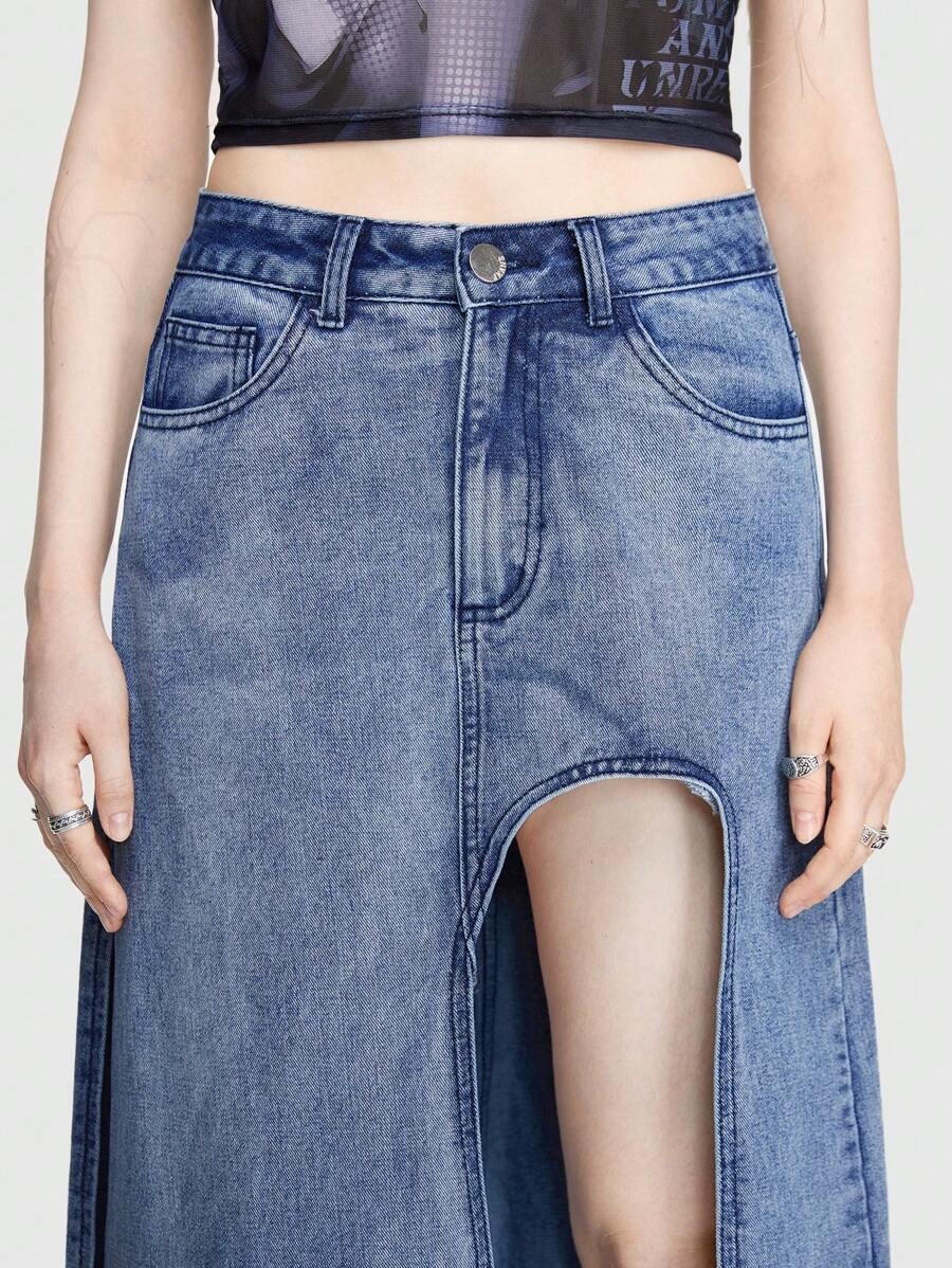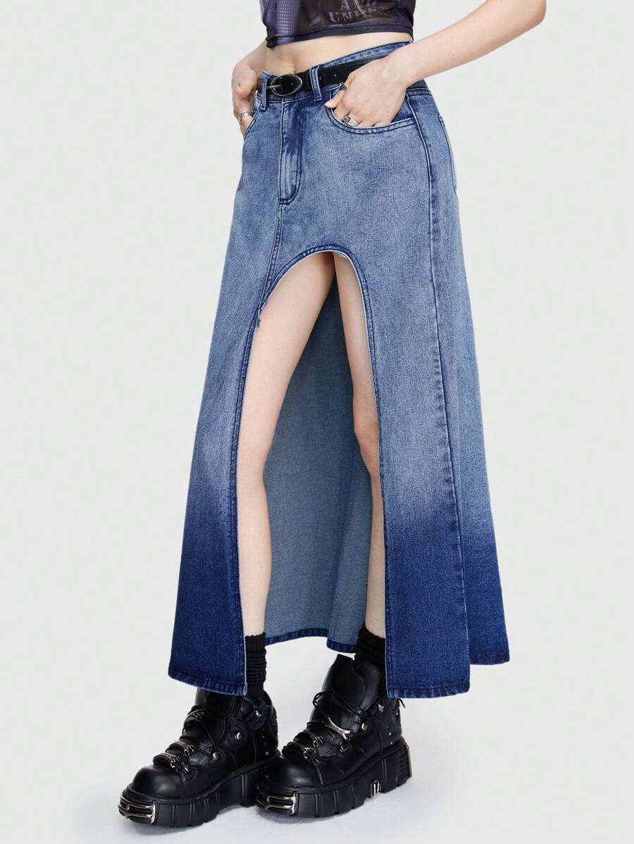 Street Life Women'S Y2k Style Streetwear High Slit Ombre Denim Skirt (With Legging)